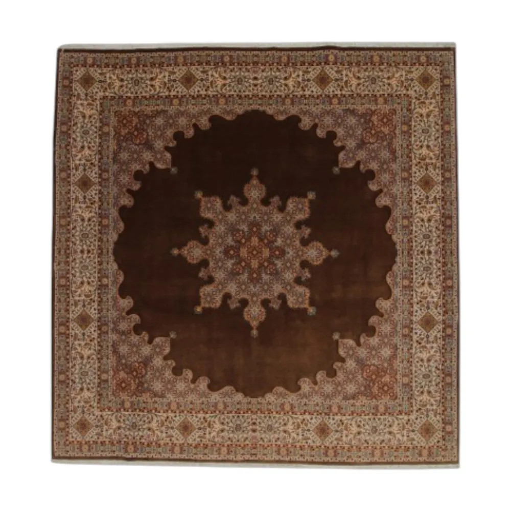 Der Grosse Teppich Moud ist ein Meisterwerk der persischen Teppichkunst. In der Größe von 247x251 cm ist dieser Perserteppich ein beeindruckendes Beispiel für traditionelle Handwerkskunst. Der Moud-Teppich stammt aus der Stadt Moud im iranischen Khorasan und besticht durch seine feine Handknüpftechnik und die reiche kulturelle Bedeutung seiner Muster.