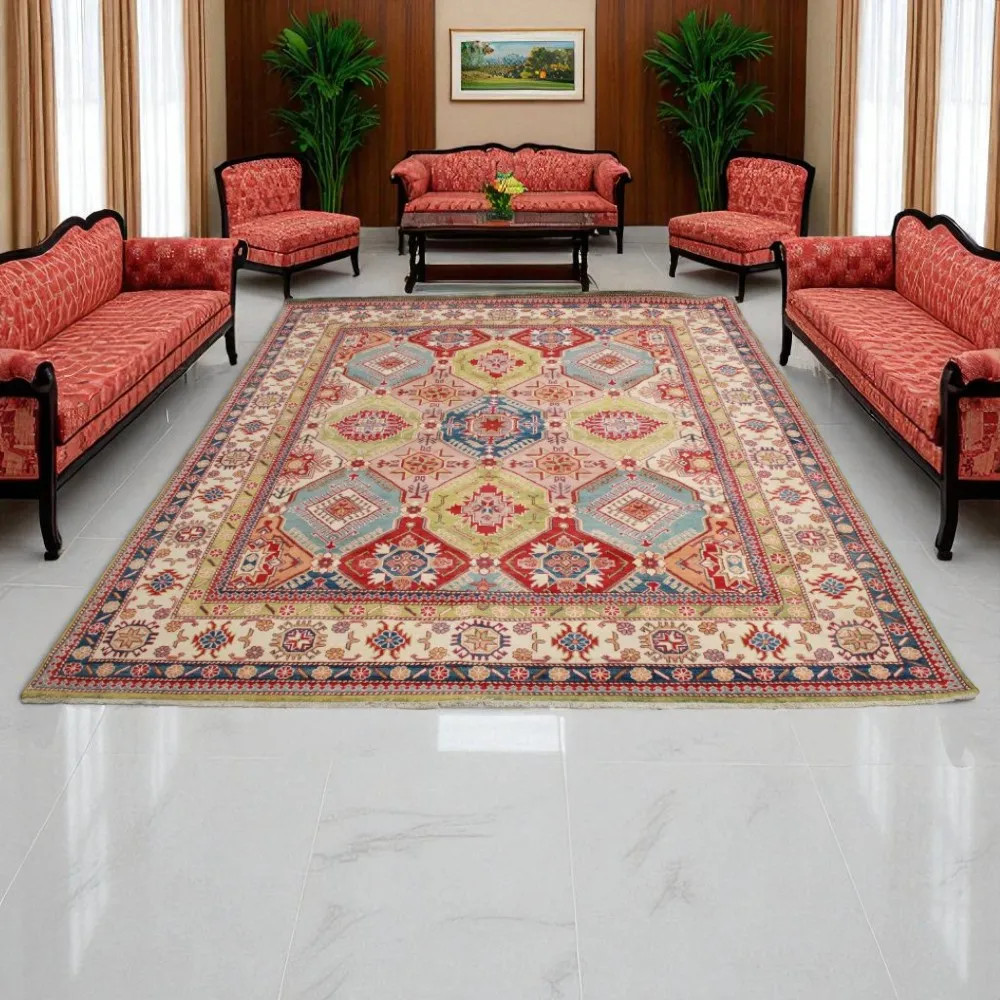 Kazak teppich 247x302 handgeknüpfter afghanischer teppich für wohnzimmer