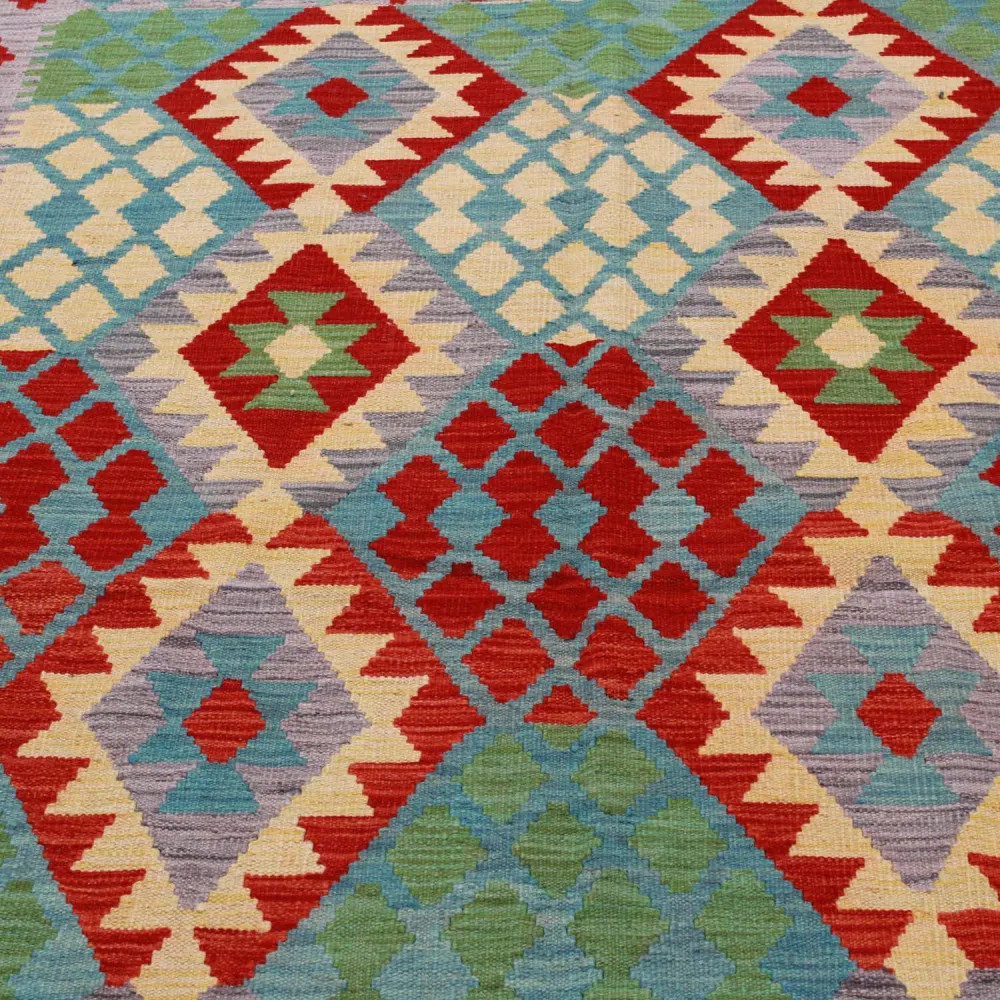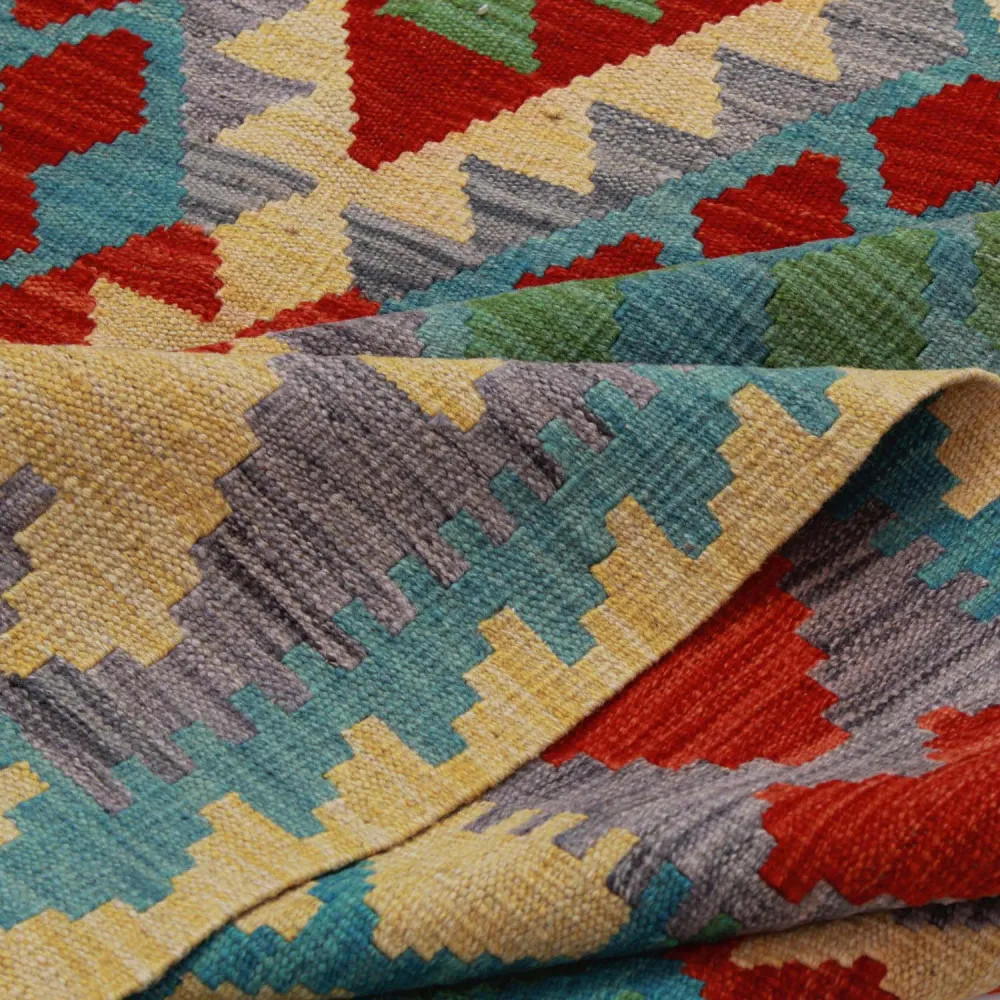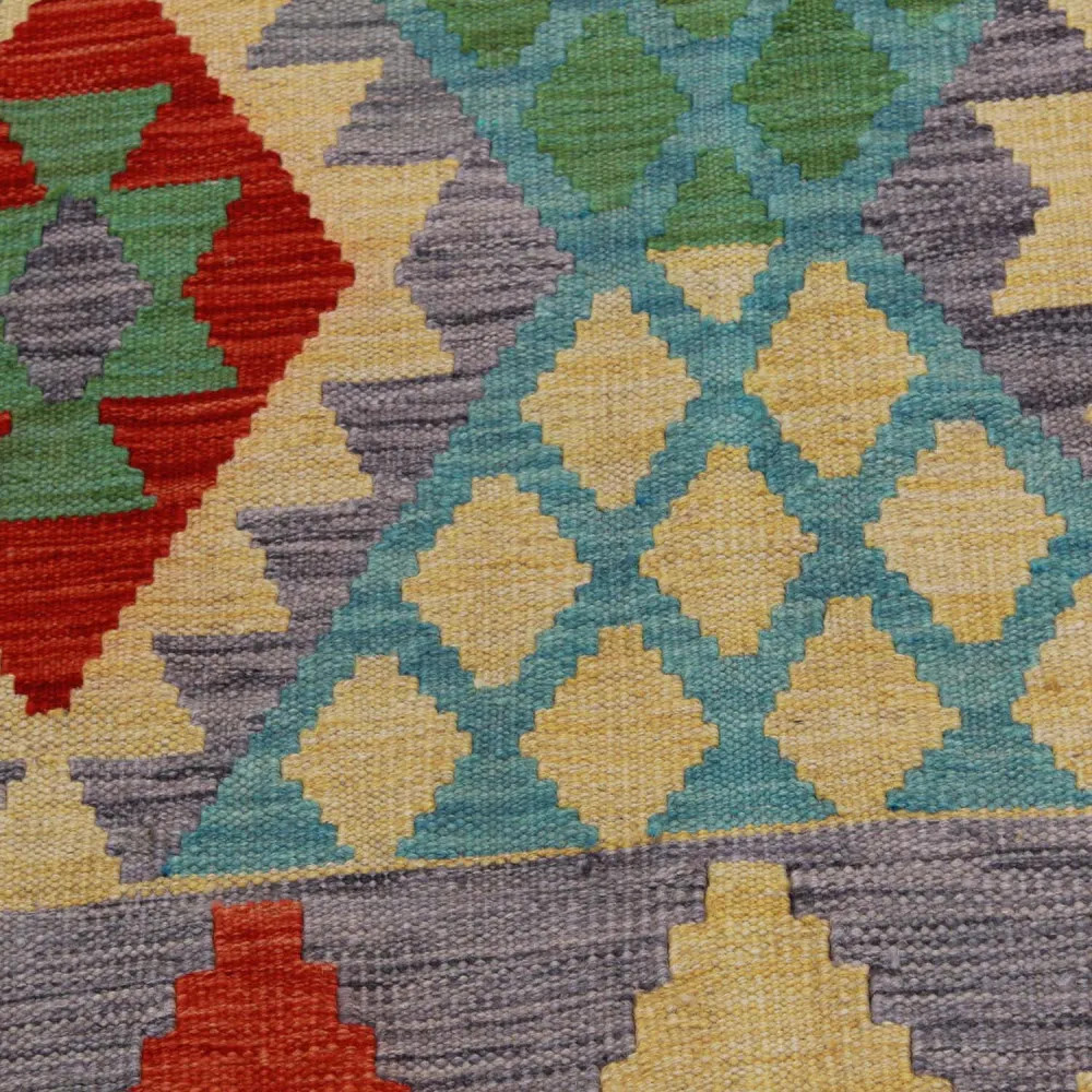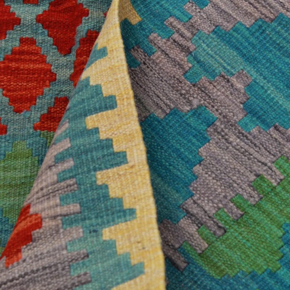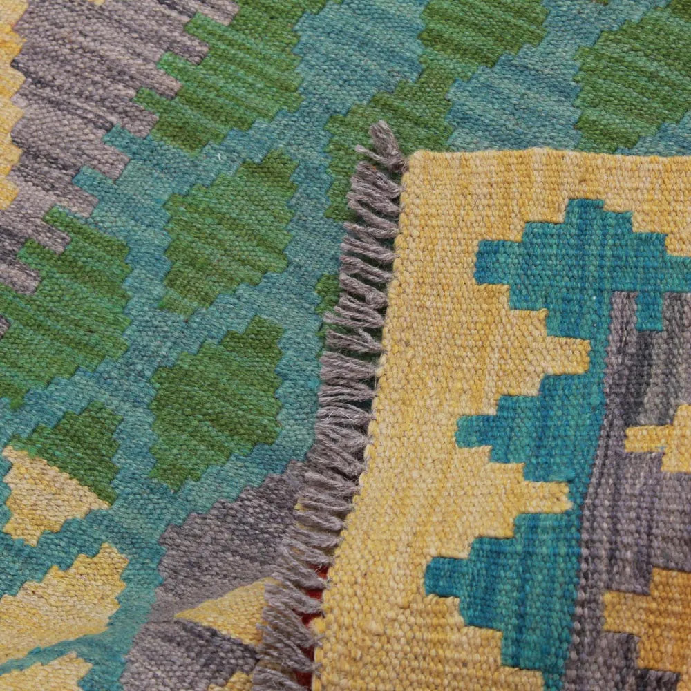 Der handgewebte Kelim Teppich ist in der ganzen Welt bekannt und beliebt. Das Besondere am Chobi Kelim Teppich ist, dass er aufgrund seiner speziellen Webtechnik dichter und kompakter ist als andere Kelims. Diese Technik macht afghanische Kelim Teppiche dünner und schneller herzustellen als traditionell geknüpfte Teppiche. Das Muster des Chobi Kelim Teppichs ist im antiken Stil gehalten, aber auch wer moderne Designs bevorzugt, wird hier fündig. Vintage Kelim Teppiche sind besonders beliebt, weil sie sich perfekt in die meisten Farbschemata für Wohnzimmer einfügen und zu den preisgünstigen Teppichen gehören. Chobi Kelim Teppiche können auf viele verschiedene Arten zur Dekoration Ihres Zuhauses verwendet werden. Sie können als Wandteppiche oder auf traditionelle Weise auf dem Boden ausgelegt werden. Diese ethnischen Kelim Teppiche sind eine ideale Wahl für das Wohnzimmer, wo sie als Blickfang im Raum dienen können. Afghanische Kelim Teppiche haben einen besonderen künstlerischen Wert, der nicht nur in ihrem ästhetischen Wert, sondern auch in ihrer historischen und kulturellen Bedeutung zum Ausdruck kommt. Handgefertigte Kelim Teppiche tragen das Erbe afghanischer Handwerkskunst und Traditionen in sich und machen jeden Kelim einzigartig und unwiederholbar. Die Wollteppiche werden aus natürlichen Materialien hergestellt, die zur warmen und einladenden Atmosphäre des Wohnzimmers beitragen.