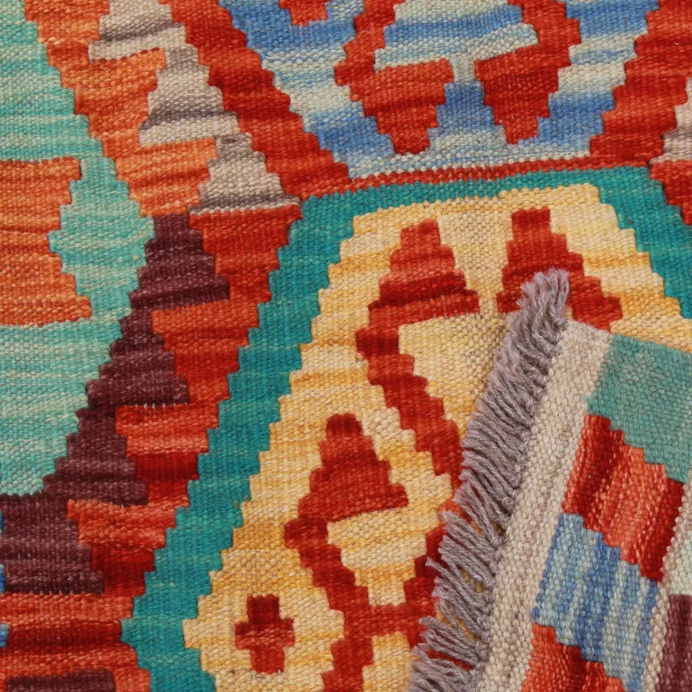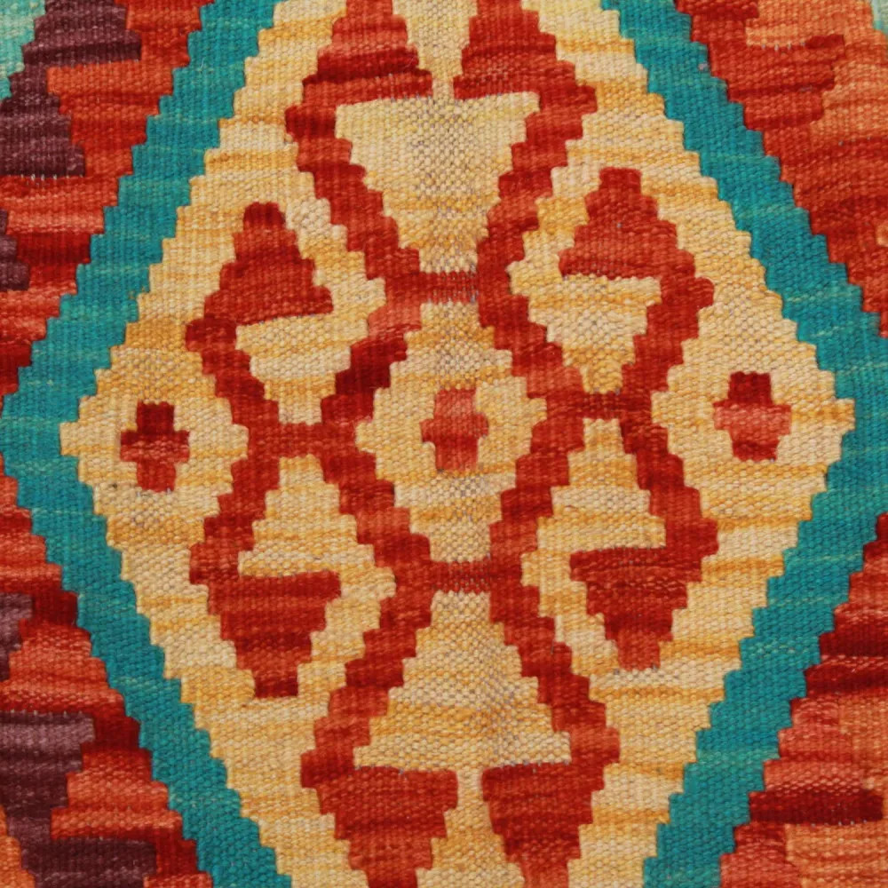 Handgewebte afghanische Kelims, Meisterwerke afghanischer Handwerkskunst, sind in der ganzen Welt hoch geschätzt und beliebt. Diese besonderen handgewebten Kelim Teppiche sind in der Regel dichter und kompakter als andere Kelim Arten, was auf eine spezielle Webtechnik zurückzuführen ist. Dank dieser Technik haben afghanische handgewebte Kelims eine feinere Textur und sind schneller fertig als handgeknüpfte Teppiche. Die Designs der Chobi Kelim Teppiche verbinden antike und moderne Elemente, so dass jeder ein Stück finden kann, das zu seinem Stil passt. Diese handgewebten Teppiche sind bei Innenarchitekten besonders beliebt, da sie sich harmonisch in die Farben der meisten Wohnungen einfügen und aufgrund ihrer erschwinglichen Preisklasse weit verbreitet sind. Chobi Kelim Teppiche können auf vielfältige Weise zur Dekoration eines Hauses verwendet werden, sei es als Wandteppich oder als Läufer. Diese ethnischen Teppiche haben einen hohen künstlerischen und kulturellen Wert. Afghanische handgewebte Kelims sind nicht nur ästhetisch ansprechend, sondern auch von großer historischer und kultureller Bedeutung. Handgewebte Teppiche bewahren die reiche Tradition und das Erbe des afghanischen Kunsthandwerks, wobei jeder Teppich einzigartig und unverwechselbar ist. Kelims aus Wolle tragen mit ihrer natürlichen Materialverwendung dazu bei, eine behagliche und einladende Atmosphäre zu schaffen.