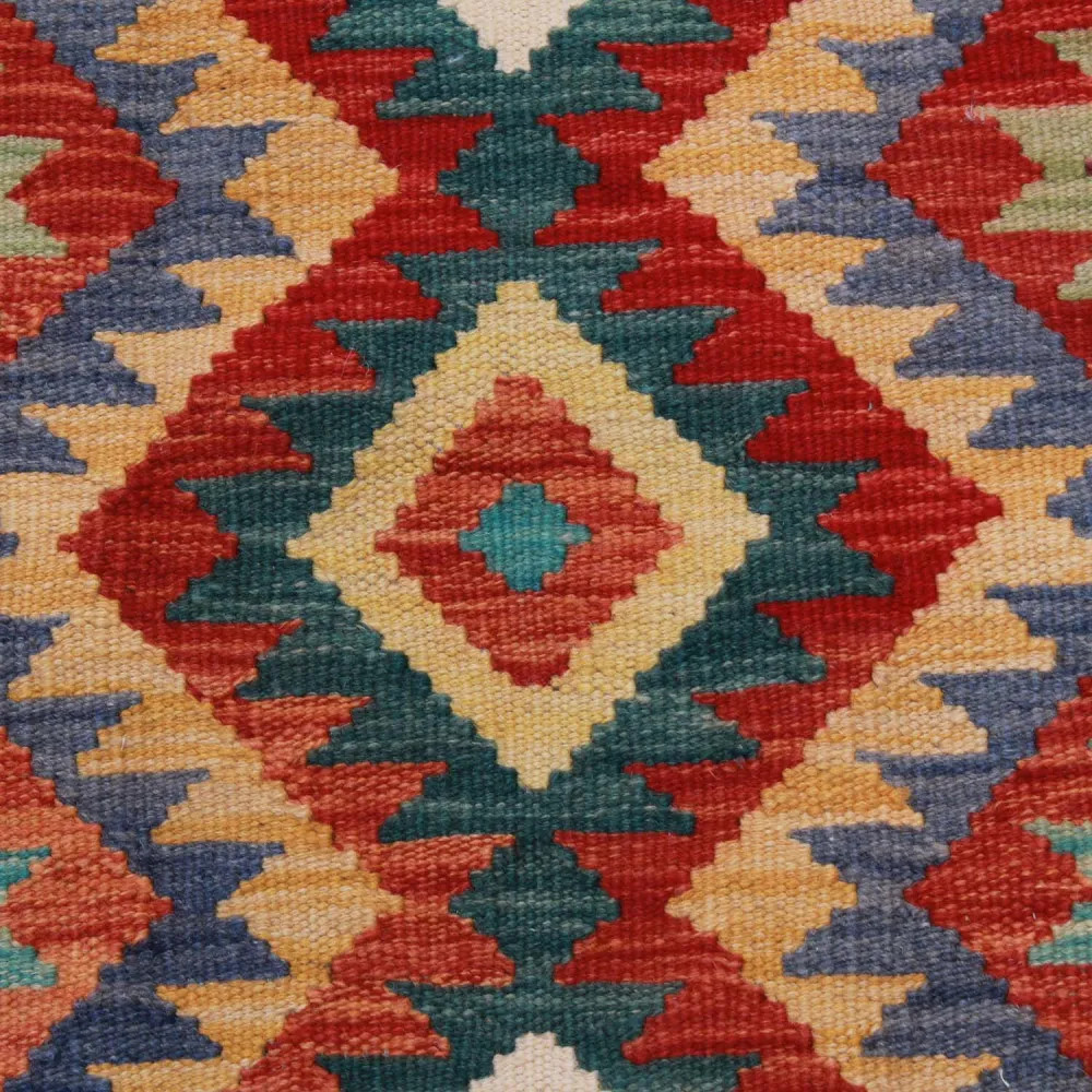 Handgewebte afghanische Kelims, Meisterwerke afghanischer Handwerkskunst, sind in der ganzen Welt hoch geschätzt und beliebt. Diese besonderen handgewebten Kelim Teppiche sind in der Regel dichter und kompakter als andere Kelim Arten, was auf eine spezielle Webtechnik zurückzuführen ist. Dank dieser Technik haben afghanische handgewebte Kelims eine feinere Textur und sind schneller fertig als handgeknüpfte Teppiche. Die Designs der Chobi Kelim Teppiche verbinden antike und moderne Elemente, so dass jeder ein Stück finden kann, das zu seinem Stil passt. Diese handgewebten Teppiche sind bei Innenarchitekten besonders beliebt, da sie sich harmonisch in die Farben der meisten Wohnungen einfügen und aufgrund ihrer erschwinglichen Preisklasse weit verbreitet sind. Chobi Kelim Teppiche können auf vielfältige Weise zur Dekoration eines Hauses verwendet werden, sei es als Wandteppich oder als Läufer. Diese ethnischen Teppiche haben einen hohen künstlerischen und kulturellen Wert. Afghanische handgewebte Kelims sind nicht nur ästhetisch ansprechend, sondern auch von großer historischer und kultureller Bedeutung. Handgewebte Teppiche bewahren die reiche Tradition und das Erbe des afghanischen Kunsthandwerks, wobei jeder Teppich einzigartig und unverwechselbar ist. Kelims aus Wolle tragen mit ihrer natürlichen Materialverwendung dazu bei, eine behagliche und einladende Atmosphäre zu schaffen.