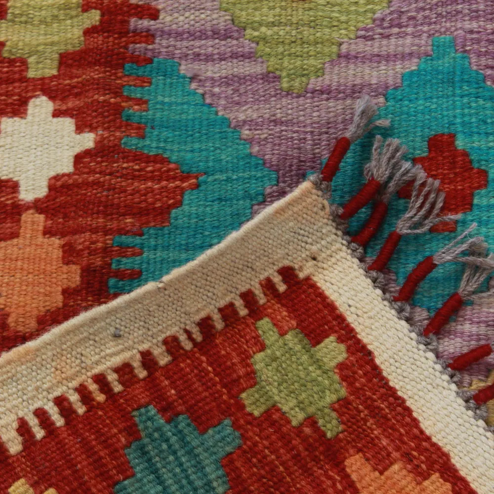 Handgewebte afghanische Kelims, Meisterwerke afghanischer Handwerkskunst, sind in der ganzen Welt hoch geschätzt und beliebt. Diese besonderen handgewebten Kelim Teppiche sind in der Regel dichter und kompakter als andere Kelim Arten, was auf eine spezielle Webtechnik zurückzuführen ist. Dank dieser Technik haben afghanische handgewebte Kelims eine feinere Textur und sind schneller fertig als handgeknüpfte Teppiche. Die Designs der Chobi Kelim Teppiche verbinden antike und moderne Elemente, so dass jeder ein Stück finden kann, das zu seinem Stil passt. Diese handgewebten Teppiche sind bei Innenarchitekten besonders beliebt, da sie sich harmonisch in die Farben der meisten Wohnungen einfügen und aufgrund ihrer erschwinglichen Preisklasse weit verbreitet sind. Chobi Kelim Teppiche können auf vielfältige Weise zur Dekoration eines Hauses verwendet werden, sei es als Wandteppich oder als Läufer. Diese ethnischen Teppiche haben einen hohen künstlerischen und kulturellen Wert. Afghanische handgewebte Kelims sind nicht nur ästhetisch ansprechend, sondern auch von großer historischer und kultureller Bedeutung. Handgewebte Teppiche bewahren die reiche Tradition und das Erbe des afghanischen Kunsthandwerks, wobei jeder Teppich einzigartig und unverwechselbar ist. Kelims aus Wolle tragen mit ihrer natürlichen Materialverwendung dazu bei, eine behagliche und einladende Atmosphäre zu schaffen.