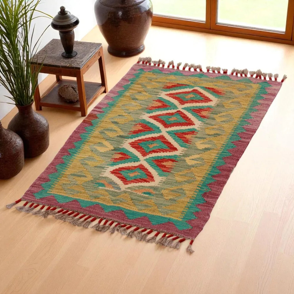 Kelim teppich Chobi 94x58 handgewebter afghanischer Kelim aus Wolle