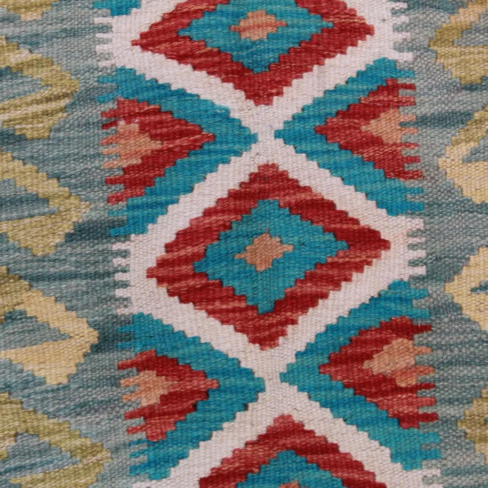 Handgewebte afghanische Kelims, Meisterwerke afghanischer Handwerkskunst, sind in der ganzen Welt hoch geschätzt und beliebt. Diese besonderen handgewebten Kelim Teppiche sind in der Regel dichter und kompakter als andere Kelim Arten, was auf eine spezielle Webtechnik zurückzuführen ist. Dank dieser Technik haben afghanische handgewebte Kelims eine feinere Textur und sind schneller fertig als handgeknüpfte Teppiche. Die Designs der Chobi Kelim Teppiche verbinden antike und moderne Elemente, so dass jeder ein Stück finden kann, das zu seinem Stil passt. Diese handgewebten Teppiche sind bei Innenarchitekten besonders beliebt, da sie sich harmonisch in die Farben der meisten Wohnungen einfügen und aufgrund ihrer erschwinglichen Preisklasse weit verbreitet sind. Chobi Kelim Teppiche können auf vielfältige Weise zur Dekoration eines Hauses verwendet werden, sei es als Wandteppich oder als Läufer. Diese ethnischen Teppiche haben einen hohen künstlerischen und kulturellen Wert. Afghanische handgewebte Kelims sind nicht nur ästhetisch ansprechend, sondern auch von großer historischer und kultureller Bedeutung. Handgewebte Teppiche bewahren die reiche Tradition und das Erbe des afghanischen Kunsthandwerks, wobei jeder Teppich einzigartig und unverwechselbar ist. Kelims aus Wolle tragen mit ihrer natürlichen Materialverwendung dazu bei, eine behagliche und einladende Atmosphäre zu schaffen.