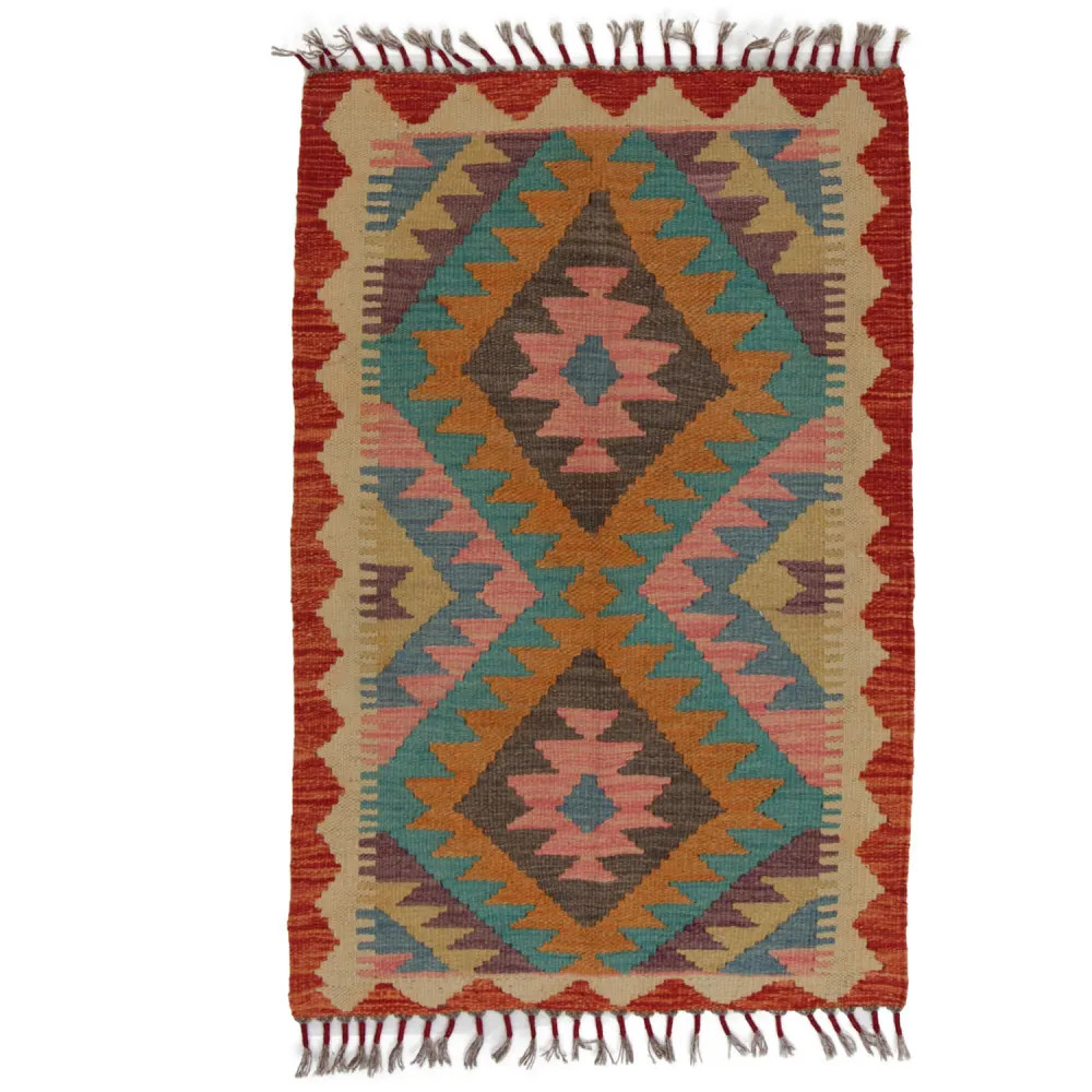Kelim teppich Chobi 94x63 handgewebter afghanischer Kelim aus Wolle
