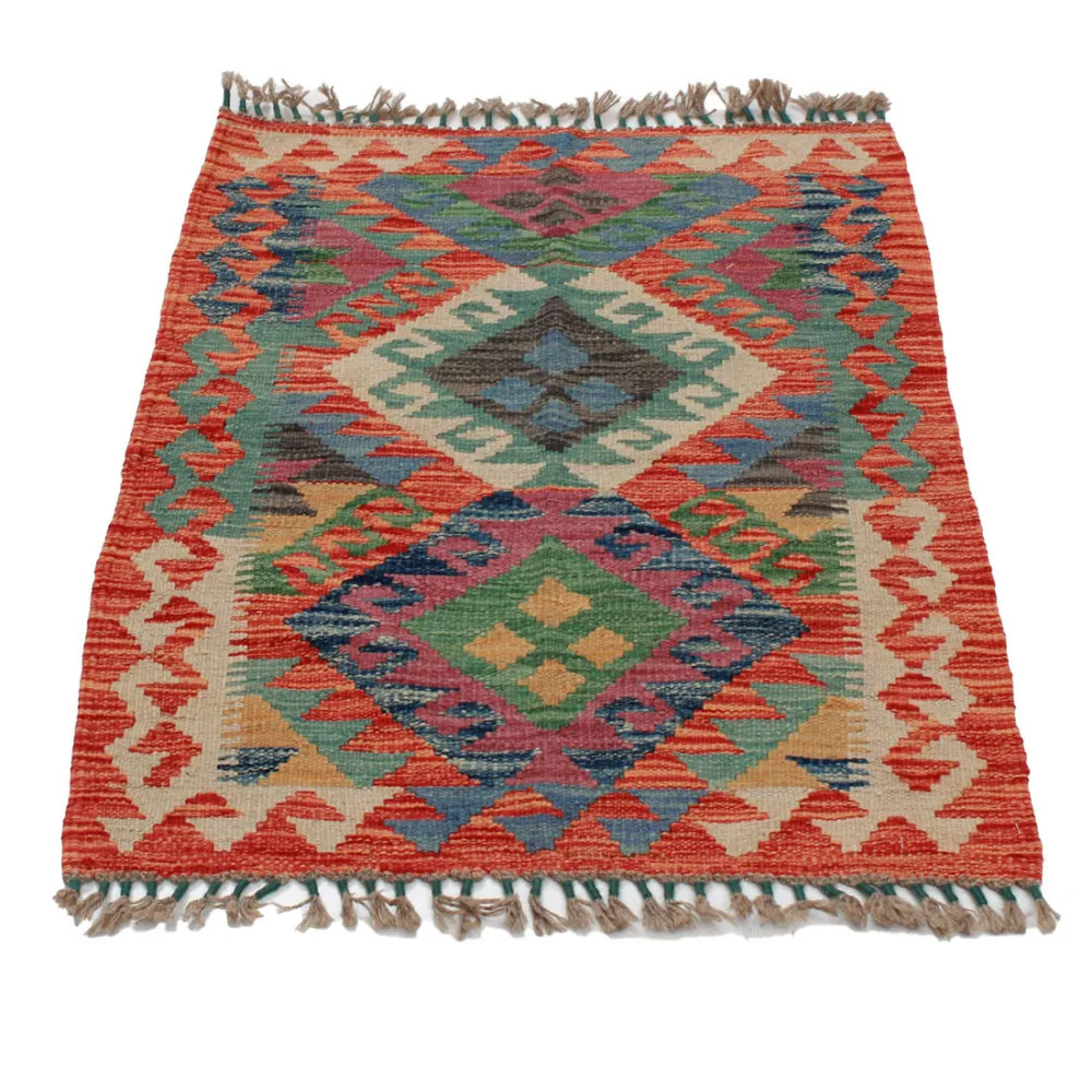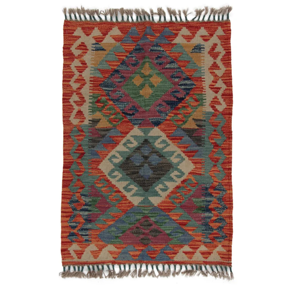 Kelim teppich Chobi 94x66 handgewebter afghanischer Kelim aus Wolle