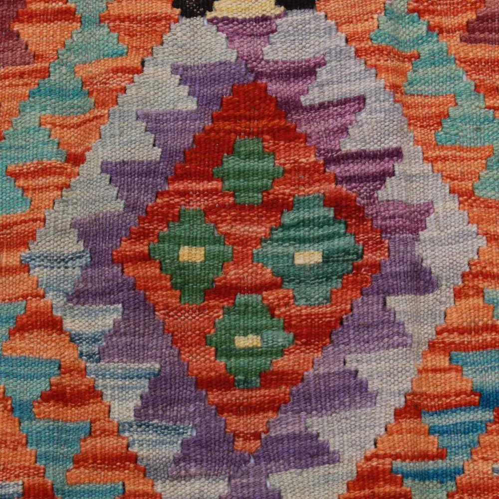 Handgewebte afghanische Kelims, Meisterwerke afghanischer Handwerkskunst, sind in der ganzen Welt hoch geschätzt und beliebt. Diese besonderen handgewebten Kelim Teppiche sind in der Regel dichter und kompakter als andere Kelim Arten, was auf eine spezielle Webtechnik zurückzuführen ist. Dank dieser Technik haben afghanische handgewebte Kelims eine feinere Textur und sind schneller fertig als handgeknüpfte Teppiche. Die Designs der Chobi Kelim Teppiche verbinden antike und moderne Elemente, so dass jeder ein Stück finden kann, das zu seinem Stil passt. Diese handgewebten Teppiche sind bei Innenarchitekten besonders beliebt, da sie sich harmonisch in die Farben der meisten Wohnungen einfügen und aufgrund ihrer erschwinglichen Preisklasse weit verbreitet sind. Chobi Kelim Teppiche können auf vielfältige Weise zur Dekoration eines Hauses verwendet werden, sei es als Wandteppich oder als Läufer. Diese ethnischen Teppiche haben einen hohen künstlerischen und kulturellen Wert. Afghanische handgewebte Kelims sind nicht nur ästhetisch ansprechend, sondern auch von großer historischer und kultureller Bedeutung. Handgewebte Teppiche bewahren die reiche Tradition und das Erbe des afghanischen Kunsthandwerks, wobei jeder Teppich einzigartig und unverwechselbar ist. Kelims aus Wolle tragen mit ihrer natürlichen Materialverwendung dazu bei, eine behagliche und einladende Atmosphäre zu schaffen.