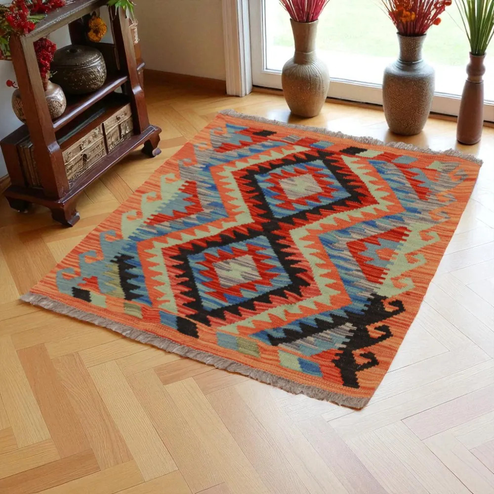 Kelim teppich Chobi 98x79 handgewebter afghanischer Kelim aus Wolle