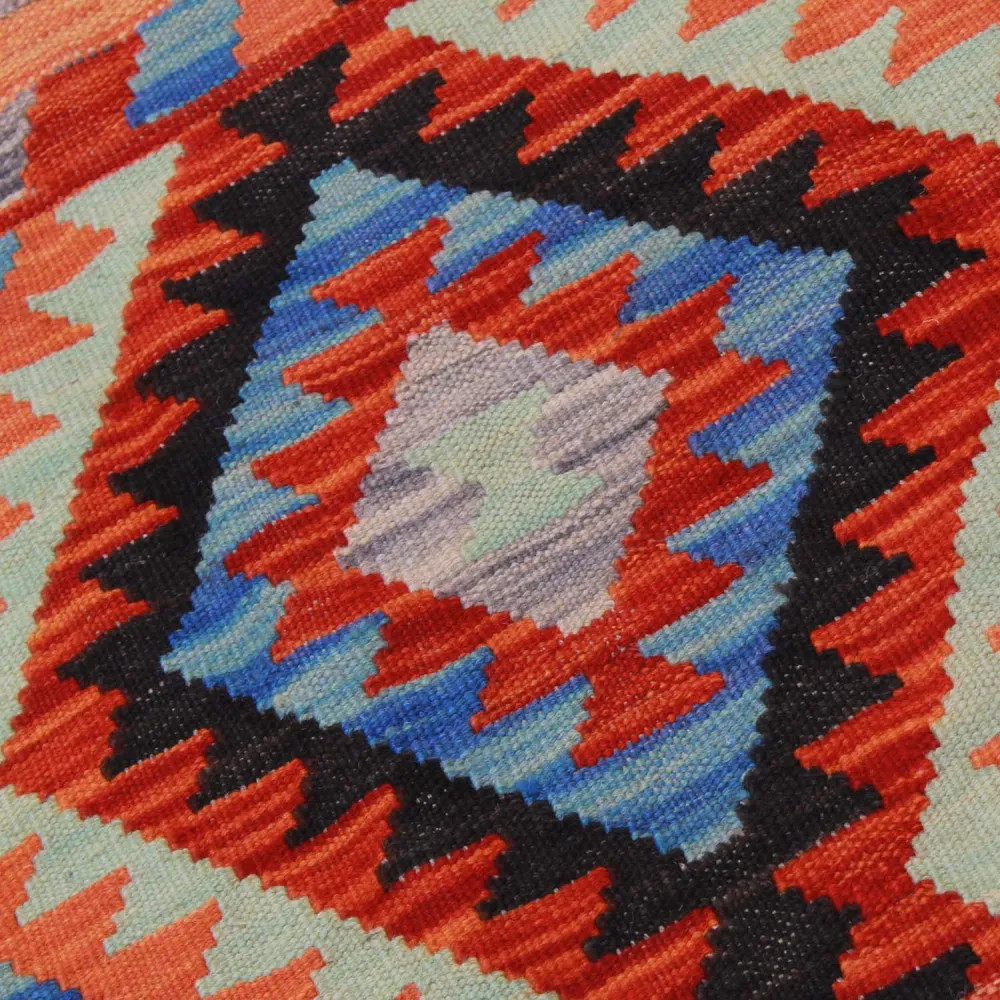 Handgewebte afghanische Kelims, Meisterwerke afghanischer Handwerkskunst, sind in der ganzen Welt hoch geschätzt und beliebt. Diese besonderen handgewebten Kelim Teppiche sind in der Regel dichter und kompakter als andere Kelim Arten, was auf eine spezielle Webtechnik zurückzuführen ist. Dank dieser Technik haben afghanische handgewebte Kelims eine feinere Textur und sind schneller fertig als handgeknüpfte Teppiche. Die Designs der Chobi Kelim Teppiche verbinden antike und moderne Elemente, so dass jeder ein Stück finden kann, das zu seinem Stil passt. Diese handgewebten Teppiche sind bei Innenarchitekten besonders beliebt, da sie sich harmonisch in die Farben der meisten Wohnungen einfügen und aufgrund ihrer erschwinglichen Preisklasse weit verbreitet sind. Chobi Kelim Teppiche können auf vielfältige Weise zur Dekoration eines Hauses verwendet werden, sei es als Wandteppich oder als Läufer. Diese ethnischen Teppiche haben einen hohen künstlerischen und kulturellen Wert. Afghanische handgewebte Kelims sind nicht nur ästhetisch ansprechend, sondern auch von großer historischer und kultureller Bedeutung. Handgewebte Teppiche bewahren die reiche Tradition und das Erbe des afghanischen Kunsthandwerks, wobei jeder Teppich einzigartig und unverwechselbar ist. Kelims aus Wolle tragen mit ihrer natürlichen Materialverwendung dazu bei, eine behagliche und einladende Atmosphäre zu schaffen.