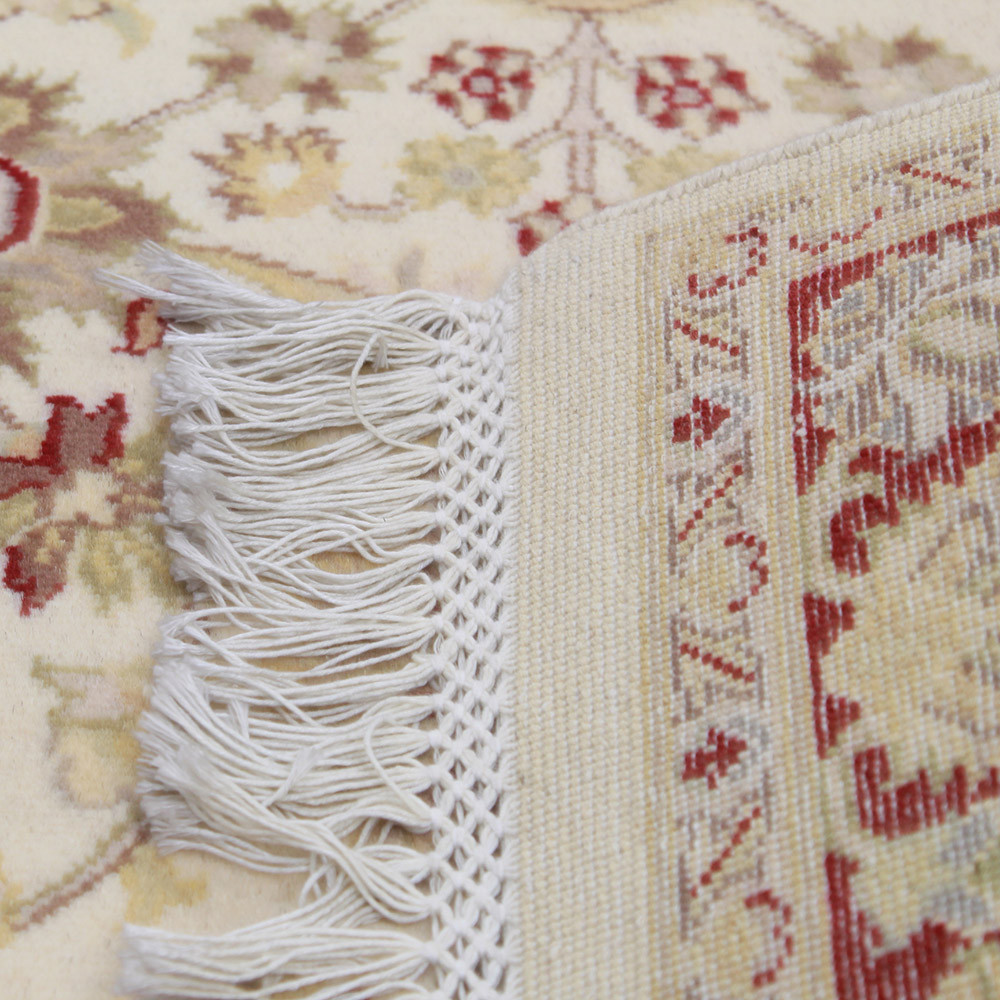 Die Designs, Motive und Farben der Isfahan Teppiche sind äußerst komplex und sorgfältig komponiert und spiegeln die Raffinesse und Detailgenauigkeit der persischen Kunst wider. Das zentrale Element der Teppiche ist in der Regel ein dominantes Medaillon muster, das von floralen Motiven und geometrischen Formen umgeben ist. Isfahan Teppiche sind berühmt für ihre symmetrischen Anordnungen und das traditionelle persische „Schah Abbas“-Muster, das ein charakteristisches Merkmal der Teppiche aus der Stadt ist. Die Harmonie der Muster und Farben verleiht den Isfahan Teppichen ein einzigartiges Aussehen, das eine einzigartige Eleganz ausstrahlt und jeder Umgebung Raffinesse verleiht. Die Erfahrung von Generationen von Kunsthandwerkern spiegelt sich in diesen Teppichen wider, die wahre Kunstwerke sind.