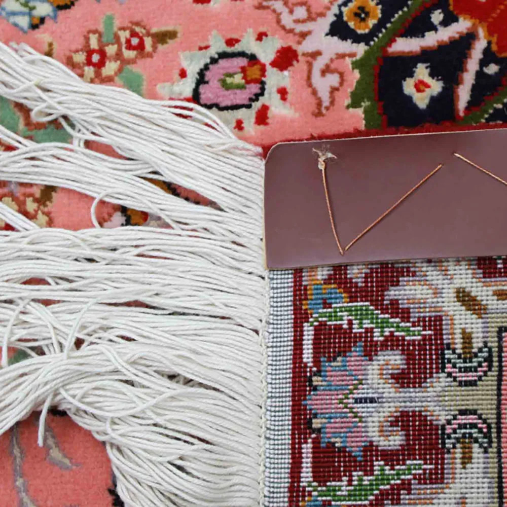 Das Erkennen eines echten Täbriz Teppichs ist besonders wichtig, da es viele Kopien und Reproduktionen auf dem Markt gibt. Echte Täbriz Teppiche haben mehrere Merkmale, die sie von Imitationen unterscheiden. Erstens sind Täbriz Teppiche berühmt für ihre hohe Knotendichte. Diese Teppiche haben oft eine Dichte von 300 000 bis 1 000 000 Knoten pro Quadratmeter, was die Grundlage für ihre Feinheit und Detailtreue ist. Je mehr Knoten ein Teppich hat, desto feiner ist das Muster und desto zeitaufwendiger ist der Produktionsprozess. Zweitens ist auch die Rückseite der Täbriz Teppiche ein Gesprächsthema. Auf der Rückseite von echten Stücken sind die Details des Musters deutlich sichtbar und die Knoten sind gleichmäßig. Diese glatte, gut definierte Rückseite ist schwer zu reproduzieren und stellt eines der sichersten Mittel zur Identifizierung des Originalstücks dar. Drittens ist auch die Qualität der Materialien entscheidend. Authentische Täbriz Teppiche bestehen aus natürlicher Wolle, die von Hand mit natürlichen Farbstoffen gefärbt wurde. Auch die Haptik des Teppichs ist aufschlussreich: Hochwertige Wolle ist weich und geschmeidig, während schwächere Imitationen aus steiferen Materialien hergestellt werden.