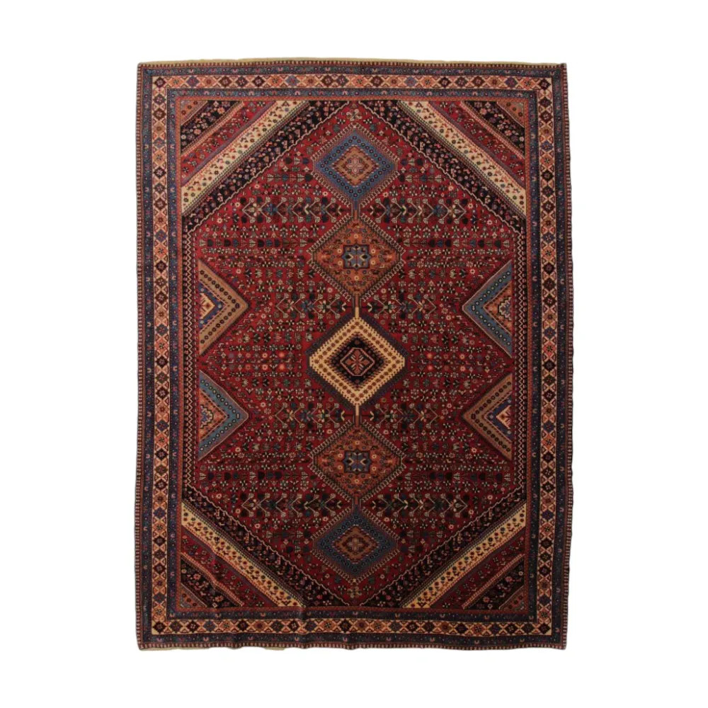 Dieser Perserteppich besticht durch seine lebhaften Farben und das beeindruckende Yalameh-Muster, das für seine geometrischen und floralen Designs bekannt ist. Mit einer Größe von 218x293 cm ist er ideal für größere Räume und setzt dort elegante Akzente. Die Herkunft aus dem Iran und die Verwendung von 100% Wolle für die geknüpfte Fläche sowie 100% Baumwolle für die Kettfäden garantieren höchste Qualität. Die Dicke von etwa 7-9 mm sorgt für ein angenehmes Laufgefühl und die handgeknüpften Details zeugen von der Handwerkskunst der iranischen Nomadenstämme. Schnell geliefert innerhalb Deutschlands, ist dieser Teppich nicht nur ein Dekorationsstück, sondern ein Ausdruck von Kultur und Geschichte.