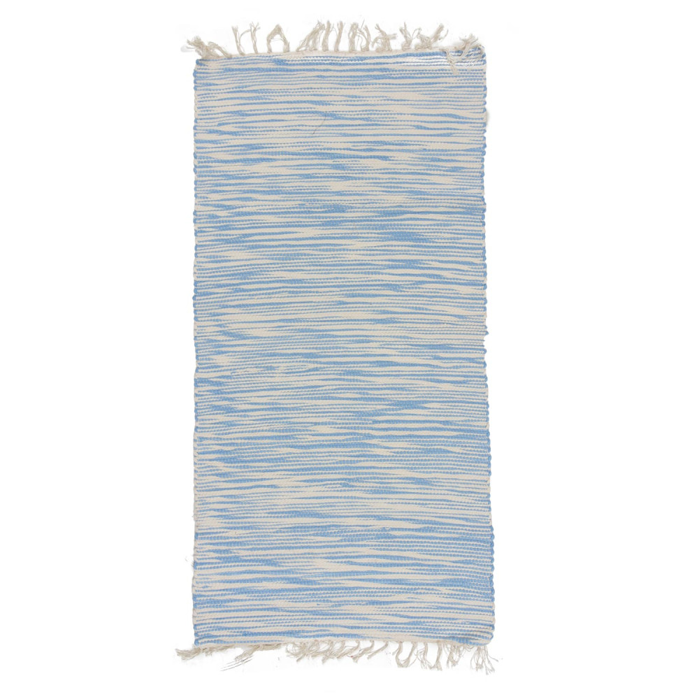 Flickenteppich 71x139 blauer-weisser Baumwolle Flickenteppich