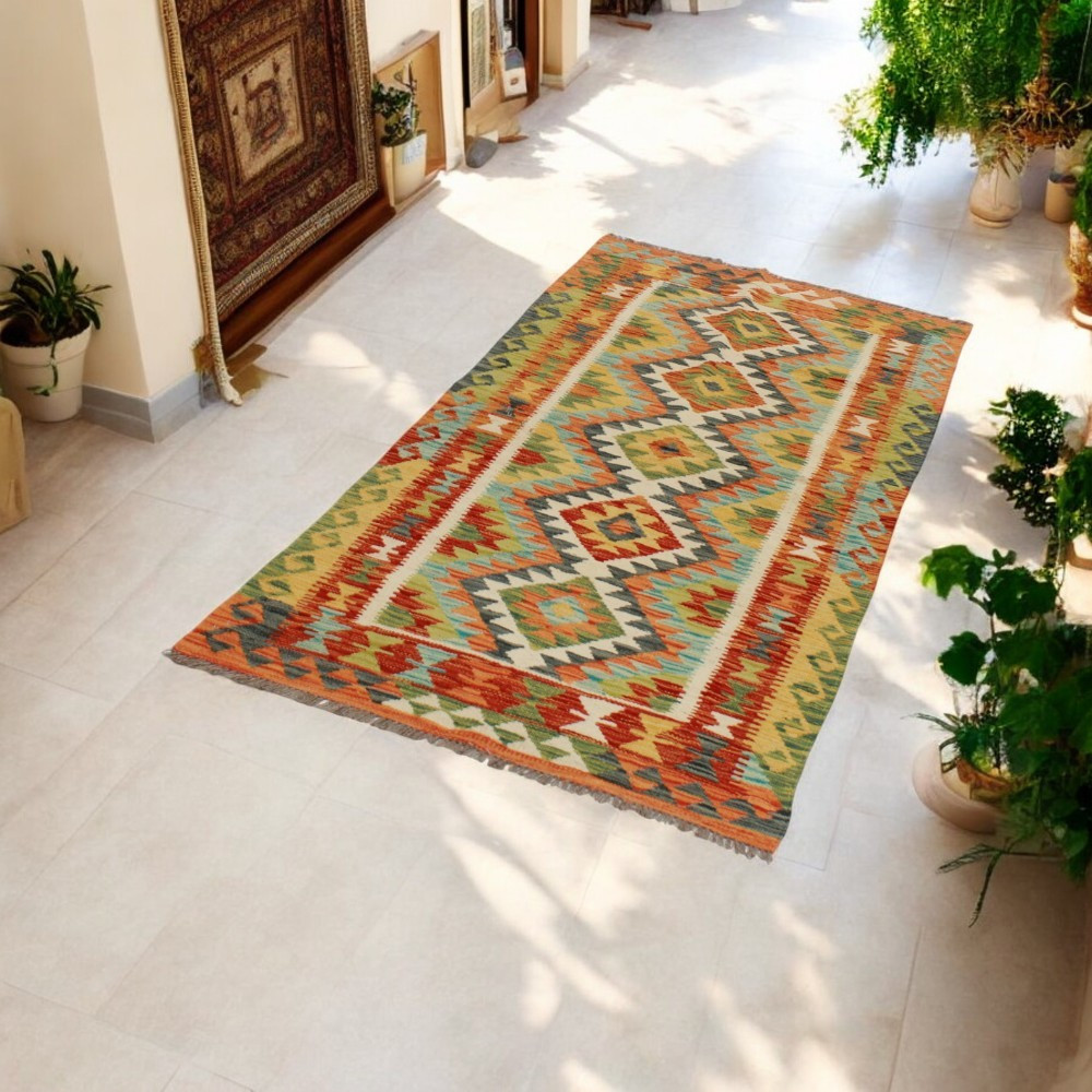 Unser Zuhause zu dekorieren ist immer eine große Freude, aber die Wahl des richtigen Kelim teppichs kann etwas komplizierter sein, als Sie denken, denn jeder ist schöner als der andere. Bei CarpetDepo haben wir eine große Auswahl an einzigartigen Chobi Kelim Teppichen, die ein echtes Schmuckstück für dein Zuhause sein können. Handgewebte Chobi Kelim Teppiche sind besonders schön und farbenfroh, so dass sie in jedem Raum eine atemberaubende Wirkung erzielen können. Die vielfältigen Farben und Muster des afghanischen Wollteppichs Kilim fügen sich wunderbar in dein Wohnzimmer, dein Schlafzimmer oder sogar deine Küche ein. Kilim Läufer gibt es speziell für Flure und Dielen. Der handgewebte Kilim Teppich aus Wolle ist leicht zu saugen und zu reinigen, so dass du dich nicht um die Pflege kümmern musst. Der Chobi Kilim Teppich besteht aus 100 % Wolle, die extrem strapazierfähig und langlebig ist. Er wird in der Provinz Maymanah, Afghanistan, hergestellt. Während des Herstellungsprozesses wird der Chobi Kilim Teppich viermal gewaschen, um sicherzustellen, dass die endgültige Farbe lange erhalten bleibt. Der Kilim war ursprünglich ein Nomadenteppich. Er wurde von Nomadenstämmen verwendet, um ihre Zelte warm zu halten. Das Gewicht des Chobi Kelim Teppichs macht es einfach, ihn als Wandteppich zu verwenden, nicht nur um den Boden zu bedecken, sondern auch um die Wände zu dekorieren. Die Qualität des Kilim Teppichs aus afghanischer Wolle ist hervorragend, so dass du dich lange an seiner Schönheit erfreuen kannst. Dank der sorgfältigen Handweberei wird der Chobi Kilim Teppich ein einzigartiges Stück in deinem Zuhause sein und eine ganz besondere Atmosphäre schaffen. Im CarpetDepo Teppichgeschäft findest du eine große Auswahl an schönen und hochwertigen Woll kelims. Sollte der Chobi Kelim Teppich nicht zu deinem Zuhause passen, bietet der CarpetDepo Teppichladen eine kostenlose Rücksendung an, sodass du deinen Chobi Kelim Teppich absolut risikofrei bestellen kannst.