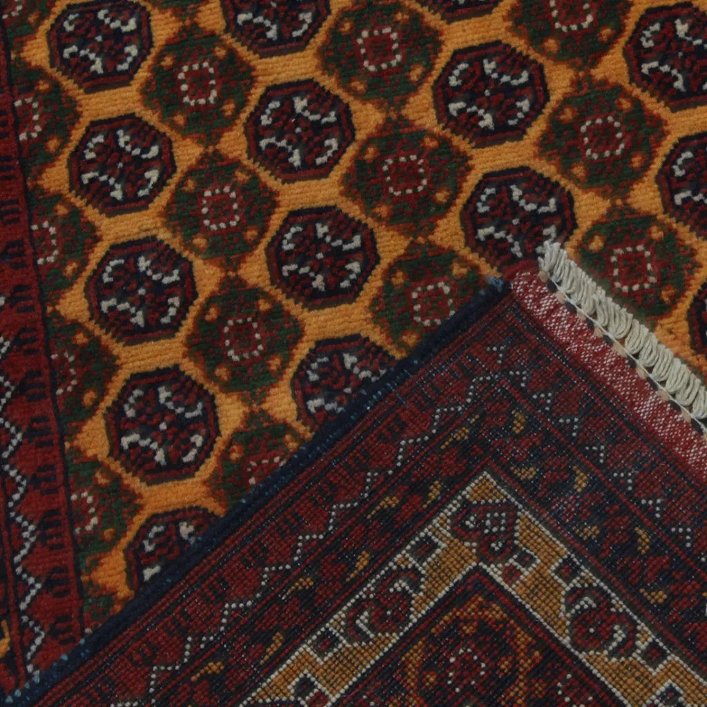 Kleinere Flecken lassen sich von afghanischen Teppichen auch ohne Fachkenntnisse leicht entfernen. Mit einem leicht feuchten Tuch lässt er sich leicht reinigen. Für größere Flecken können Sie ein handelsübliches Reinigungsmittel für Wollteppiche verwenden. Es lohnt sich, zunächst eine kleine Fläche zu reinigen, um sicherzustellen, dass das Reinigungsmittel die Wolle oder die Farbe des Teppichs nicht beschädigt. Afghanische Teppiche können jederzeit mit dem Staubsauger abgesaugt werden, allerdings nur in Faserrichtung, so wie alle Orientteppiche normalerweise abgesaugt werden. Der schlimmste Feind von Wollteppichen sind Motten. Daher sollten Sie sie vor allem im Sommer häufig lüften und den kleinen afghanischen Teppich gelegentlich bewegen, um zu verhindern, dass Motten ihre Eier darunter ablegen. Bei größeren Flecken oder gelegentlicher Grundreinigung empfehlen wir Ihnen, sich an eine professionelle Teppichreinigung zu wenden. Stellen Sie keine schweren Möbel auf den Teppich, da dies den Teppich mit der Zeit beschädigen kann. Der größte Vorteil eines handgeknüpften Teppichs ist, dass er restauriert werden kann.