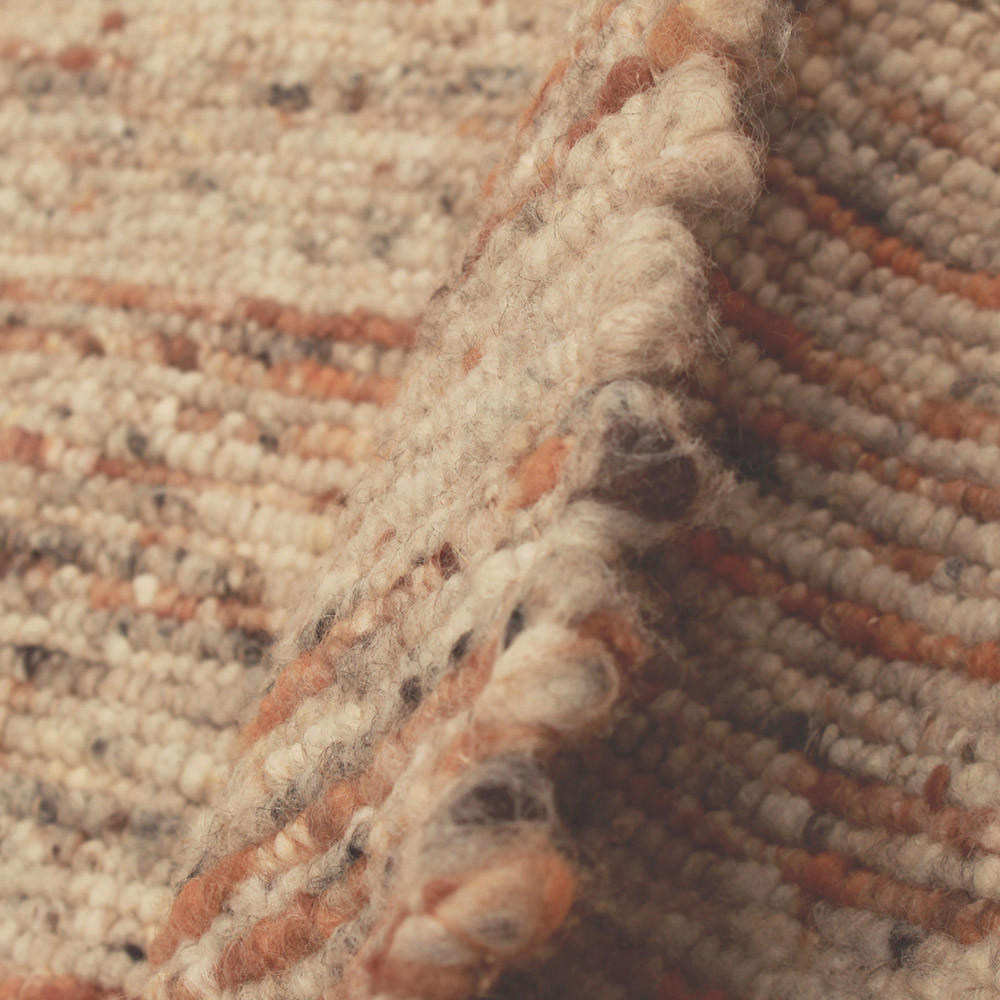 Der Teppich besteht zu 100 % aus neuseeländischer Schurwolle und ist frei von Allergenen, wodurch er auch für Allergiker bestens geeignet ist. Ein moderner Wollteppich wie dieser ist eine ausgezeichnete Möglichkeit, eine warme und einladende Atmosphäre in Ihrem Zuhause zu schaffen und dem Raum einen natürlichen, rustikalen Charme zu verleihen. Dank seiner beidseitigen Nutzbarkeit ist ein dicker Wollteppich eine langlebige und nachhaltige Wahl. Ein natürlicher Wollteppich kann sofort nach dem Auslegen gesaugt werden und lässt sich leicht reinigen. Größere Flecken können mit einem speziellen Schaumreiniger für Wollteppiche entfernt werden.