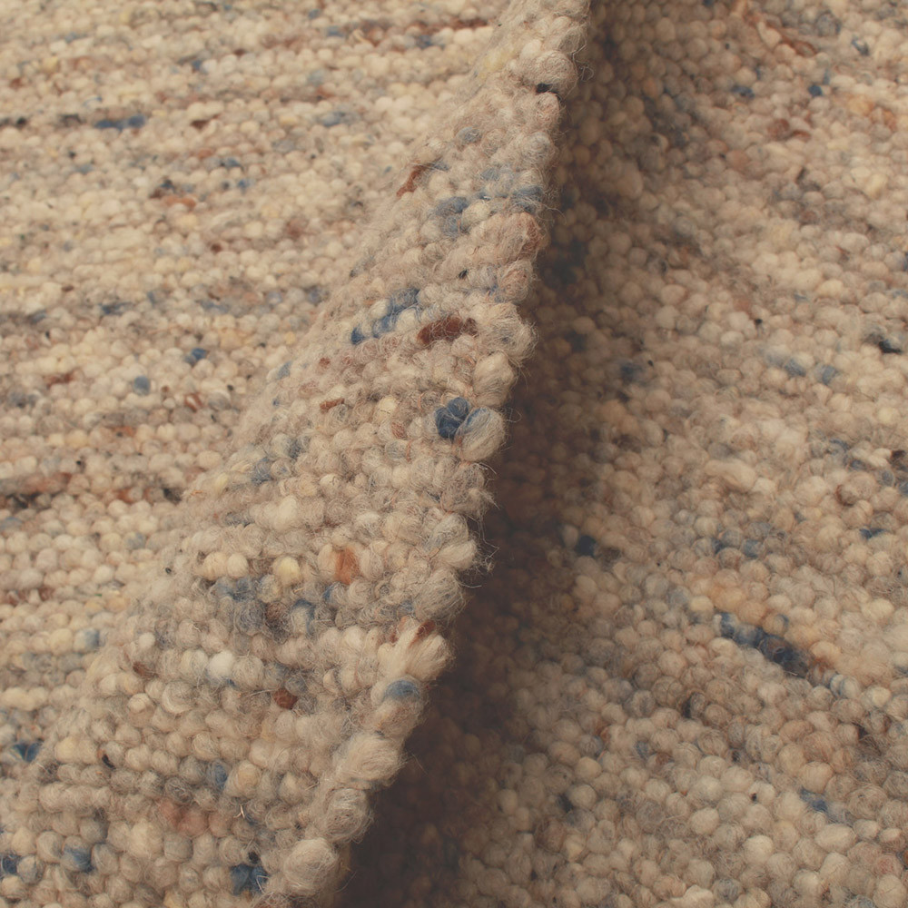 Der Teppich besteht zu 100 % aus neuseeländischer Schurwolle und ist frei von Allergenen, wodurch er auch für Allergiker bestens geeignet ist. Ein moderner Wollteppich wie dieser ist eine ausgezeichnete Möglichkeit, eine warme und einladende Atmosphäre in Ihrem Zuhause zu schaffen und dem Raum einen natürlichen, rustikalen Charme zu verleihen. Dank seiner beidseitigen Nutzbarkeit ist ein dicker Wollteppich eine langlebige und nachhaltige Wahl. Ein natürlicher Wollteppich kann sofort nach dem Auslegen gesaugt werden und lässt sich leicht reinigen. Größere Flecken können mit einem speziellen Schaumreiniger für Wollteppiche entfernt werden.