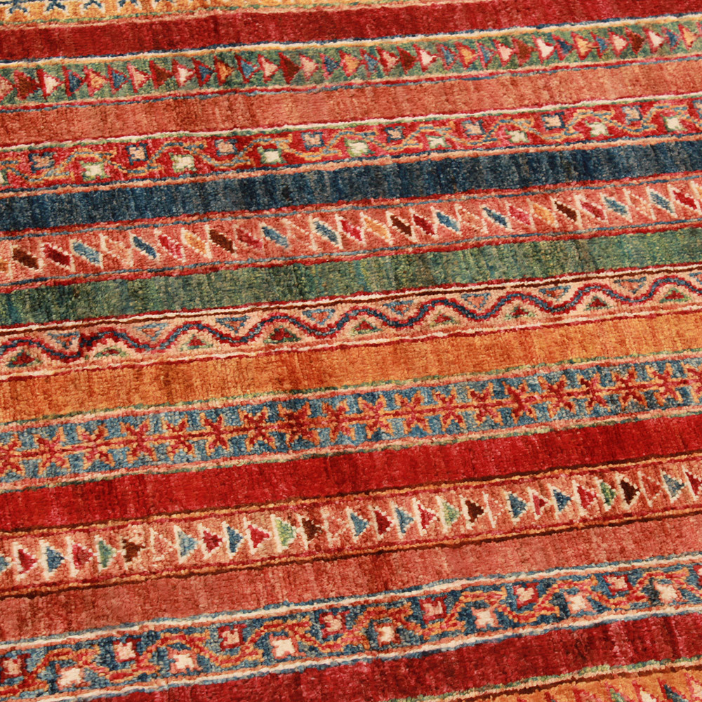 Der Arijana Shaal Orientteppich ist die perfekte Kombination aus klassischer Eleganz und Modernität. Egal, ob Sie einen minimalistischen oder klassischen Stil bevorzugen, der Arijana Shaal Orientteppich passt perfekt in jedes Wohnzimmer. Seine verspielten Farben werden die Stimmung Ihres raum aufhellen, und seine Vielseitigkeit erlaubt es, ihn mühelos mit Möbeln und anderen Textilien zu kombinieren. Der handgeknüpfte Arijana Shaal-Teppich ist äußerst strapazierfähig und langlebig, so dass Sie sich lange an seiner Schönheit und seinem Komfort erfreuen können. Darüber hinaus verfügt der Arijana Shaal-Teppich über Eigenschaften, die selbst die anspruchsvollsten Kunden zu schätzen wissen. Der Arijana Shaal Wollteppich, der in Afghanistan von Menschen hergestellt wird, die in einem städtischen Umfeld leben, strahlt ein wohnliches und komfortables Gefühl aus, egal ob er als Wohnzimmer teppich oder als Teppich läufer in einem Flur verwendet wird. Die vielfältigen Muster und satten Farben des Teppichs sind ein echter Blickfang. Die Wolle ist von hoher Qualität und äußerst strapazierfähig, so dass der Teppich auch bei starker Beanspruchung lange Zeit seinen ursprünglichen Zustand behält. Arijana Shaal Handknüpfteppiche sind nicht nur schön, sondern auch eine praktische und langlebige Investition. Die Herstellung eines Arijana Shaal Orientteppichs erfordert eine Menge Arbeit und Geduld. Für das Färben des Orientteppichs werden die Farben aus Pflanzen gewonnen und zum Färben der Wolle verwendet. Dieser Orientteppich wird zu 100% handgeknüpft und ist somit die perfekte Kombination aus traditioneller Gheordes-Knüpftechnik und meisterhafter Handwerkskunst. Sobald der Wollteppich fertig ist, wird er viermal gewaschen und in der Sonne getrocknet, damit die Farben lange ihre Lebendigkeit und Haltbarkeit behalten. Diese sorgfältige Pflege und Qualitätskontrolle trägt zu der hohen Qualität und langen Lebensdauer des Teppichs bei. Viele Menschen haben den Irrglauben, dass ein Teppich um so besser und haltbarer ist, je dicker er ist. Dies ist jedoch ein Irrglaube. Die Dicke hängt eher von der Scherung ab, während die Haltbarkeit eines Teppichs von der Knotendichte und der Qualität der Wolle abhängt. Der handgeknüpfte Teppich von Arijana Shaal eignet sich perfekt für jedes Wohnzimmer und kann mit seiner atemberaubenden Optik ein echtes Schmuckstück in Ihrem Zuhause sein. Ein anderer Name für den Arijana Shaal Wollteppich ist der Khorjin Teppich, und auch unter diesem Namen sind sie bekannt und anerkannt. Wenn Sie einen Arijana Shaal Wollteppich auf der Website des Teppichgeschäfts CarpetDepo bestellen, werden Sie garantiert mit seiner Qualität und seinem Aussehen zufrieden sein. Sollten Sie dennoch der Meinung sein, dass er nicht Ihren Erwartungen entspricht, machen Sie sich keine Sorgen, wir kümmern uns um die Rücksendung und die Rückerstattung des Kaufpreises. Die Zufriedenheit unserer Kunden ist unsere oberste Priorität.