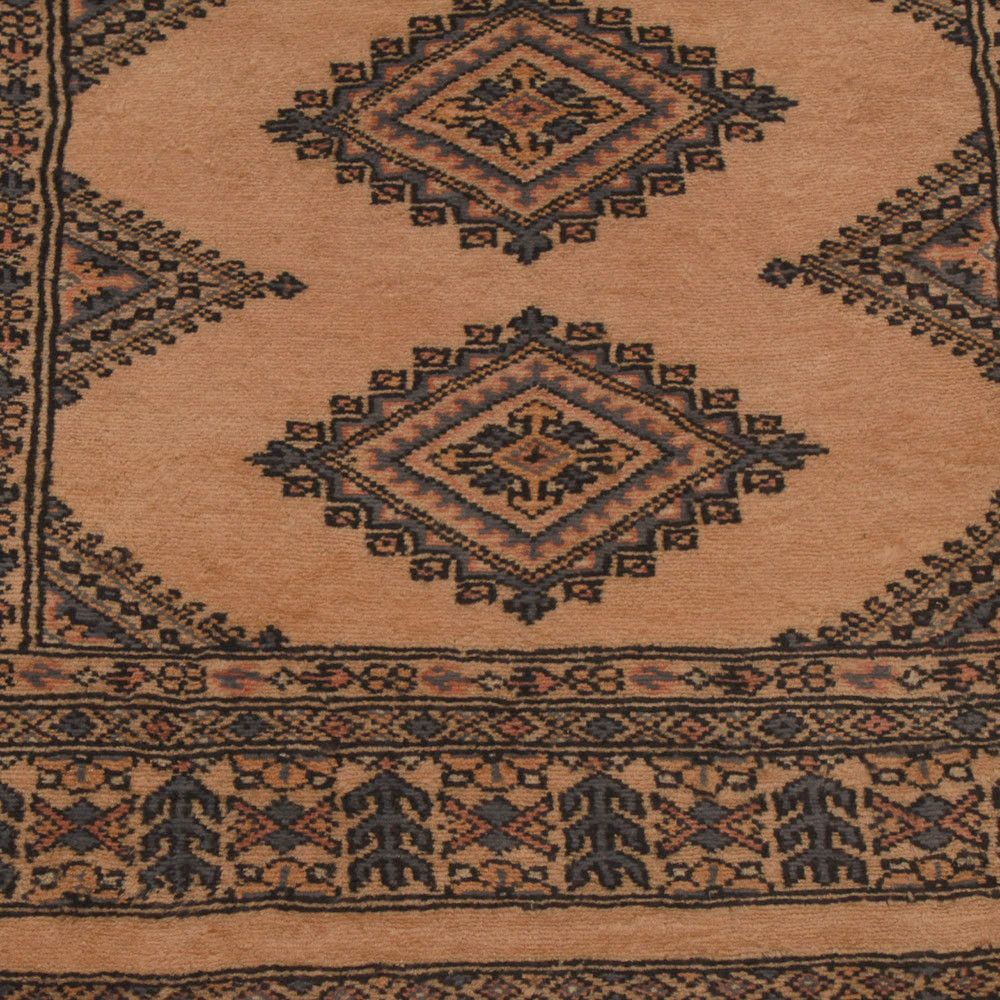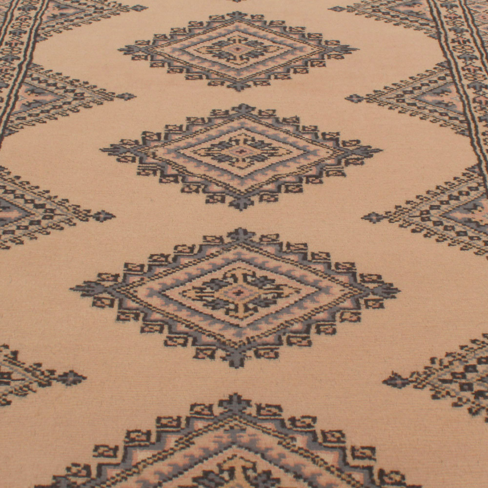 Der pakistanische Teppich wird in den Provinzen Punjab und Sindh geknüpft. Dieser Orientteppich, der eine jahrhundertealte Tradition widerspiegelt, ist eine Hommage an die Handwerkskunst und die Kunstfertigkeit der Kunsthandwerker. Pakistanische Teppiche sind weltweit für ihre Qualität bekannt und tragen das reiche kulturelle Erbe Pakistans in sich. Das Design und die Herstellungstechniken dieser Orientteppiche stammen von den Turkmenen, die sie auf dem alten Teppichmarkt der berühmten Stadt Buchara gehandelt haben. Eines der berühmtesten Muster (Bukhara) hat seinen Namen von hier und ist seitdem ein charakteristisches Merkmal dieser schönen Orientteppiche. Die pakistanischen Teppiche werden aus neuseeländischer Merinowolle hergestellt, die für hervorragende Qualität und Haltbarkeit sorgt. Dank ihrer dichten Knüpfung sind sie langlebig und widerstandsfähig gegen die Abnutzung durch den täglichen Gebrauch. Dieser elegante Teppich gilt heute als einer der besten Wollteppiche in Pakistan. Nach der Herstellung und dem Scheren wird der Teppich viermal gewaschen und anschließend sorgfältig getrocknet, um seine leuchtenden Farben und seine Farbechtheit zu bewahren. Mit ihren geometrischen Mustern und eleganten Farben verleihen sie Ihrem Zuhause ein einzigartiges Ambiente, ganz gleich, ob es sich um einen Wohnzimmer teppich handelt, der die Eleganz des Raumes unterstreicht, oder um einen Schlafzimmer teppich, der Ihren Schritten Komfort und Weichheit verleiht. Der pakistanische Teppich läufer ist auch eine ideale Wahl für Flure. Wenn Sie auf der Suche nach einem einzigartigen Orientteppich sind, der aus hochwertigen Materialien gefertigt ist und künstlerische Handwerkskunst zeigt, sind pakistanische Wollteppiche die perfekte Wahl. Die harmonische Kombination aus raffinierten Mustern und leuchtenden Farben schafft in jedem Raum eine magische Atmosphäre. Ein pakistanischer Teppich ist nicht nur ästhetisch ansprechend, sondern auch äußerst praktisch. Seine dicht geknüpfte Oberfläche ist strapazierfähig und widerstandsfähig, so dass er viele Jahre lang in einem schönen Zustand bleibt. Außerdem isolieren die natürlichen Eigenschaften des Wollmaterials den Boden und verleihen ihm hervorragende Wärmedämmeigenschaften. Pakistanische Teppiche gibt es in einer Vielzahl von Größen und Formen, so dass jeder den besten für sein Zuhause finden kann.