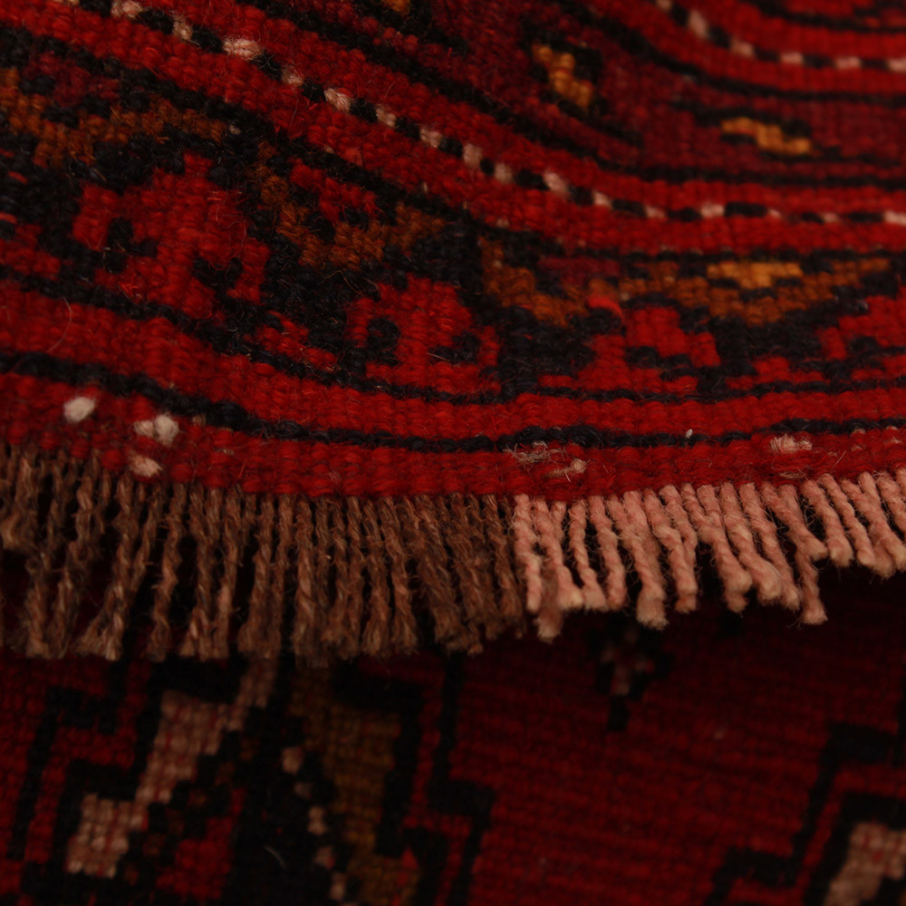 Wenn Sie auf der Suche nach einem authentischen Teppich mit unverwechselbarem Charakter sind, der sowohl dekorativ als auch praktisch ist, ist dieser turkmenische Teppich eine ausgezeichnete Wahl. Der kleine Teppich mit dem Namen „Balisht Nakhsha“ stammt aus der Region Mashhad im Iran und war ursprünglich als Stammesgegenstand (als Kissen/Kissenbezug) bekannt. Heute erfreut er sich als Teppich mit auffälligem Muster, der überall im Interieur platziert werden kann, zunehmender Beliebtheit. Der handgeknüpfte Teppich ist eine der wichtigsten Garantien für Langlebigkeit und Detailreichtum.