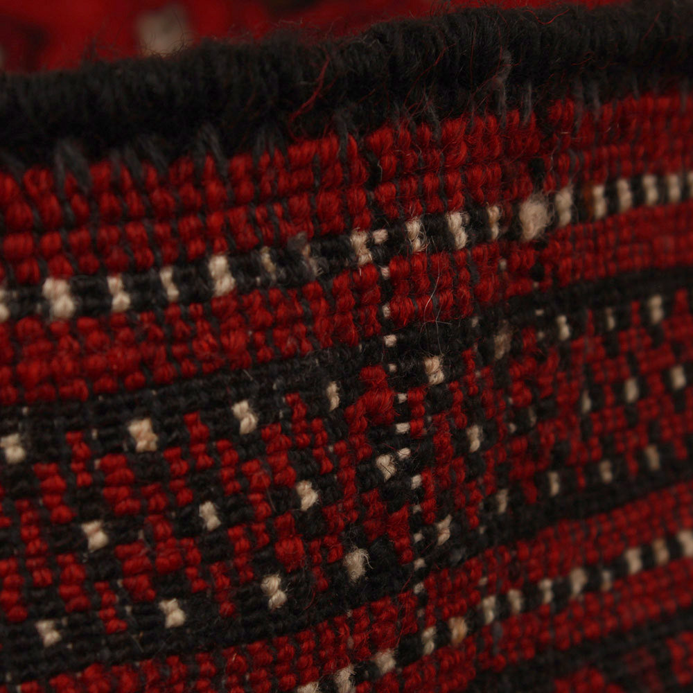 Wenn Sie auf der Suche nach einem authentischen Teppich mit unverwechselbarem Charakter sind, der sowohl dekorativ als auch praktisch ist, ist dieser turkmenische Teppich eine ausgezeichnete Wahl. Der kleine Teppich mit dem Namen „Balisht Nakhsha“ stammt aus der Region Mashhad im Iran und war ursprünglich als Stammesgegenstand (als Kissen/Kissenbezug) bekannt. Heute erfreut er sich als Teppich mit auffälligem Muster, der überall im Interieur platziert werden kann, zunehmender Beliebtheit. Der handgeknüpfte Teppich ist eine der wichtigsten Garantien für Langlebigkeit und Detailreichtum.