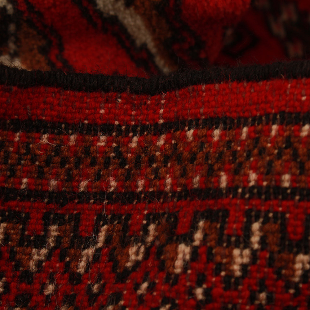 Wenn Sie auf der Suche nach einem authentischen Teppich mit unverwechselbarem Charakter sind, der sowohl dekorativ als auch praktisch ist, ist dieser turkmenische Teppich eine ausgezeichnete Wahl. Der kleine Teppich mit dem Namen „Balisht Nakhsha“ stammt aus der Region Mashhad im Iran und war ursprünglich als Stammesgegenstand (als Kissen/Kissenbezug) bekannt. Heute erfreut er sich als Teppich mit auffälligem Muster, der überall im Interieur platziert werden kann, zunehmender Beliebtheit. Der handgeknüpfte Teppich ist eine der wichtigsten Garantien für Langlebigkeit und Detailreichtum.