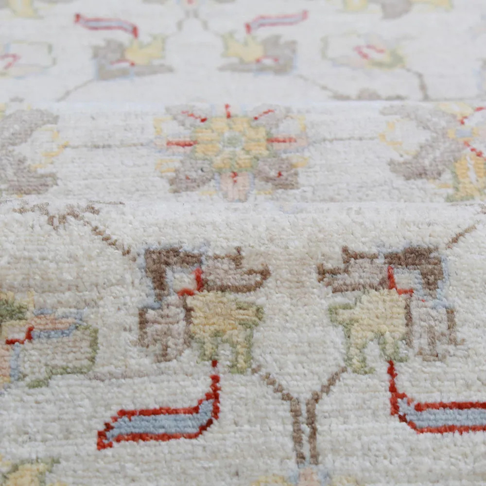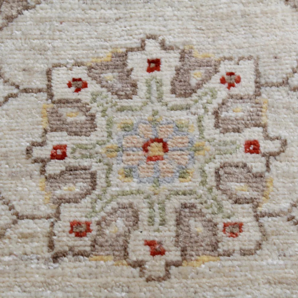 Ziegler Teppiche sind sehr beliebt, denn ihre Farben werden aus verschiedenen Bäumen hergestellt. Sobald ein Ziegler Teppich hergestellt ist, wird er viermal gewaschen und in der Sonne getrocknet. Ihre Designs sind antiken Teppichen nachempfunden und oft von heller Farbe. Sie sind ein sehr begehrter Orientteppich, vor allem weil sie sich hervorragend für die meisten Wohnungen eignen, egal ob sie minimalistisch oder klassisch eingerichtet sind. Der geknüpfte Teil des Ziegler-Teppichs wird aus 100% Ghazni Wolle hergestellt. Sie sind pflegeleicht und fusseln nicht. Viele Menschen glauben, dass ein Perserteppich umso besser und haltbarer ist, je dicker er ist. Die Strapazierfähigkeit hängt von der Knüpftechnik und der Qualität des verwendeten Materials ab. In den meisten Fällen sind langfaserige Teppiche weniger haltbar, weil sich der Staubsauger leicht in den geknüpften Fasern festsaugen kann. Als Wohnzimmer- oder Schlafzimmer teppich sorgt er für Eleganz. Als strapazierfähiger Teppich kann er auch unter dem Esstisch verwendet werden. Wir haben auch mehrere Längen von Ziegler Teppichen läufer auf Lager.