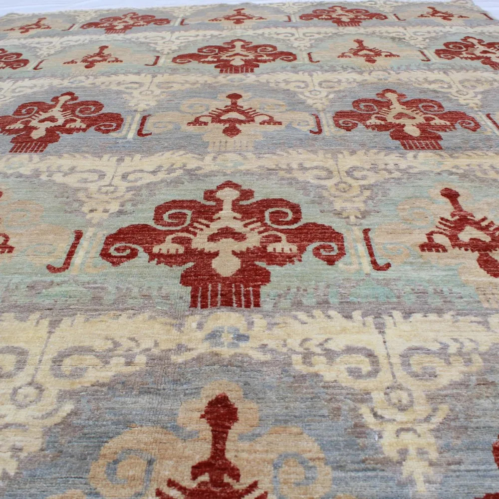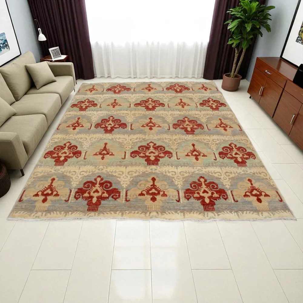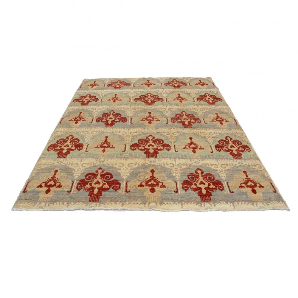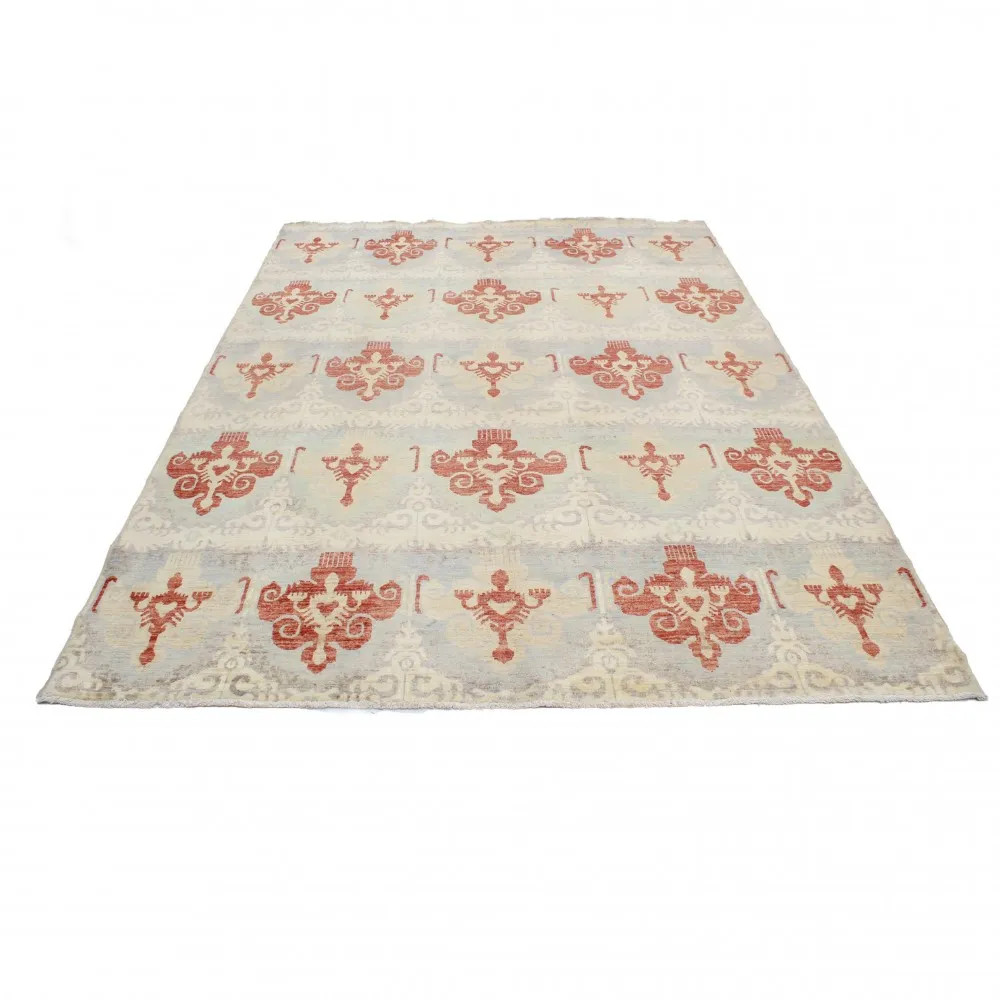Der Ikat modern orientteppich ist ein modern designter Teppich, der die perfekte Mischung aus dem heutigen Zeitalter und dem traditionellen orientalischen Teppichstil darstellt. Obwohl er relativ jung im Design ist, hat er viele Vorteile, die ihn ideal für minimalistische und klassische Innenräume machen. Der handgeknüpfte Ikat modern orientteppich wird in Afghanistan hergestellt und wird mit seinen modernen Mustern und Farben ein einzigartiges Ambiente in Ihr Zuhause bringen. Der fertige Teppich wird gründlich gewaschen und in der heißen Sonne getrocknet, was zu seiner erstaunlich dauerhaften Farbe beiträgt. Dieser moderne Orientteppich ist ein wahres Meisterwerk, das zu 100% handgeknüpft ist. Die Farben der Ikat modern orientteppiche werden aus natürlich gewonnenen Farbstoffen gewonnen. Die Knüpfung des Ikat modern orientteppichs besteht aus Wolle und der Schuss aus Baumwolle. Der handgeknüpfte Ikat teppich wird mit der Gheordes-Knüpftechnik hergestellt, was soviel bedeutet wie doppelte Knüpfung. Der Entwurf und die Herstellung eines Ikat teppichs ist ein langwieriger und mühsamer Prozess, der die große Erfahrung und das Fachwissen der Teppichknüpfmeister erfordert. Der Ikat Orientteppich schafft in jedem Raum eine angenehme Atmosphäre, egal ob es sich um ein Wohnzimmer oder ein Schlafzimmer handelt. Und wenn Sie einen Teppich für Ihren Flur suchen, werden Sie in der Auswahl des CarpetDepo Teppichgeschäfts das Richtige finden. Der handgeknüpfte Ikat modern orientteppich ist nicht nur ein Blickfang, sondern auch eine praktische und stilvolle Wahl für die Dekoration Ihres Zuhauses. Dieser Teppich ist auch eine ideale Wahl, um ein warmes Gefühl zu erzeugen. Die natürlichen Eigenschaften von Wolle machen ihn zu einem ausgezeichneten Isolator gegen Kälte, der selbst in minimalistischen Räumen, in denen schöne Fliesen eine wichtige Rolle spielen, eine gemütliche Atmosphäre schafft. Dieser Wollteppich ist nicht nur ideal für Ihr Zuhause, sondern auch für eine Vielzahl von Gemeinschaftsräumen. Sie verleihen zum Beispiel auch luxuriösen Büros und Hotels einen eleganten und stilvollen Look. Wenn Sie eine ganz besondere und exklusive Atmosphäre in Ihrem Wohn- oder Schlafzimmer schaffen möchten, ist der handgeknüpfte Teppich von Ikat die perfekte Wahl. Bevor Sie den Teppich kaufen, sollten Sie sich vergewissern, dass die Größe für die Größe Ihres Zimmers geeignet ist. Das Muster und die Farbe des modernen Orientteppichs werden erst vor Ort richtig deutlich, ob er mit dem gewählten Raum harmoniert. Sollten Sie mit dem von Ihnen gewählten Teppich nicht zufrieden sein, brauchen Sie sich jedoch keine Sorgen zu machen, denn CarpetDepo bietet Ihnen ein kostenloses Rückgaberecht.