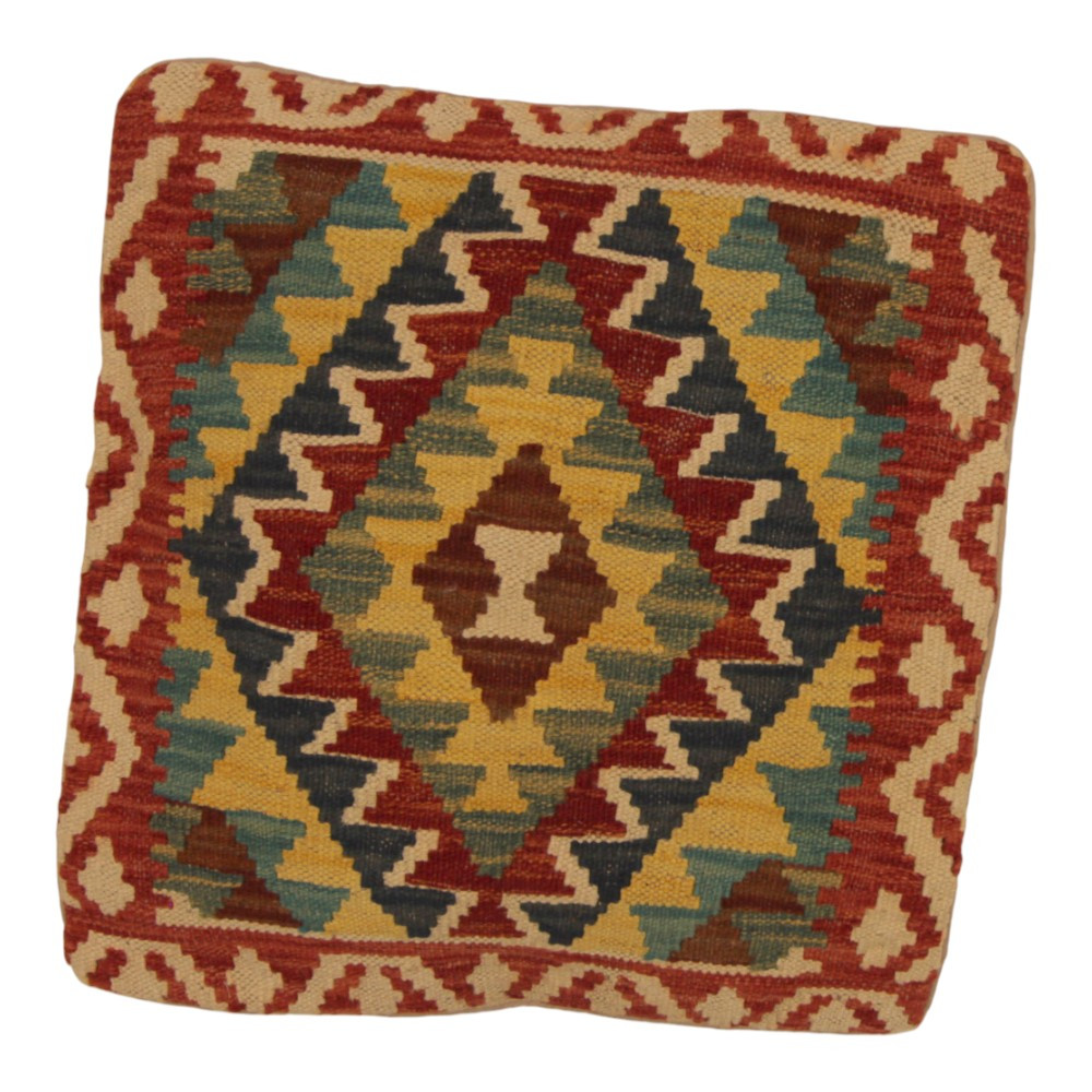 Sehen Sie sich dieses handgewebte Dekokissen aus Kelim an, das die perfekte Mischung aus traditioneller afghanischer Teppichweberei und stilvoller Wohnkultur ist. Dieser einzigartige Kelim Kissenbezug wird jedes Interieur mit seinem stilvollen Aussehen, den satten Farben und den atemberaubenden Mustern zum Leben erwecken. Die handgefertigte Kissenhülle besteht aus einem original afghanischen Kelim Teppich, der perfekt mit verschiedenen Möbeln und Einrichtungsstilen harmoniert. Die leuchtenden Farben und einzigartigen Muster sorgen für einen aufregenden visuellen Effekt, der das Ambiente Ihres Zimmers, ob Wohnzimmer oder Schlafzimmer, aufwertet. Der aus afghanischer Wolle gefertigte Kelim Kissenbezug ist pflegeleicht und einfach zu reinigen. Außerdem sorgt die Langlebigkeit des Materials dafür, dass Sie sich jahrelang an der Schönheit eines Kelim Dekokissens auf Ihren Möbeln erfreuen können. Die Farben und Muster der Kelim Kissen bleiben dank der gründlichen Wäsche nach dem Weben lange Zeit lebendig. Diese sorgfältige Behandlung garantiert die Langlebigkeit und ursprüngliche Schönheit des Kissenbezugs. Die farbenfrohen Kelim Dekokissen bieten eine Vielzahl von Möglichkeiten für Einrichtungsideen. Ganz gleich, ob Sie eine einzigartige Atmosphäre in Ihrem Raum schaffen oder Ihre vorhandenen Möbel aufwerten möchten, ein farbenfrohes Kelim Kissen ist die perfekte Wahl.