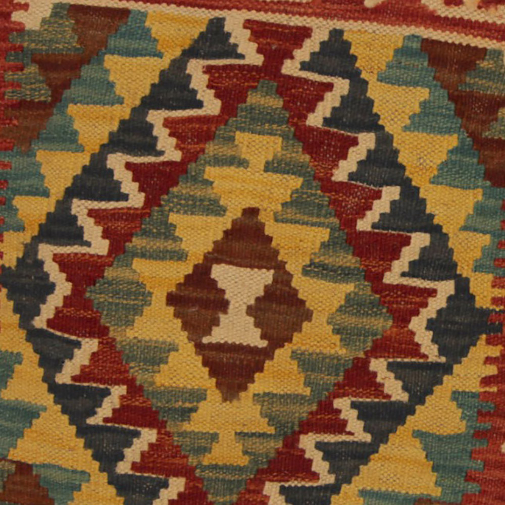 Die Herstellung des Kissens ist faszinierend und akribisch. Generationen von geschickten afghanischen Teppichwebern geben die traditionellen Handwebtechniken weiter, die zur Herstellung der Wollkissen verwendet werden. Jedes Wollgarn wird mit natürlichen Pflanzenfarben behandelt, die in der Natur vorkommen. Die Verwendung von hochwertiger Wolle sorgt dafür, dass die Kissenbezüge langlebig und widerstandsfähig sind. Die Wolle spendet natürliche Wärme und macht die Kissenbezüge nicht nur dekorativ, sondern auch bequem. Die Kelim Kissenbezüge sind mit einer starken Baumwollrückseite versehen, um ihre Lebensdauer zu verlängern und strukturelle Stabilität zu gewährleisten. Durch die Baumwollrückseite sind sie außerdem leicht zu reinigen und zu pflegen, so dass sie ihre Schönheit und Funktionalität lange Zeit behalten.