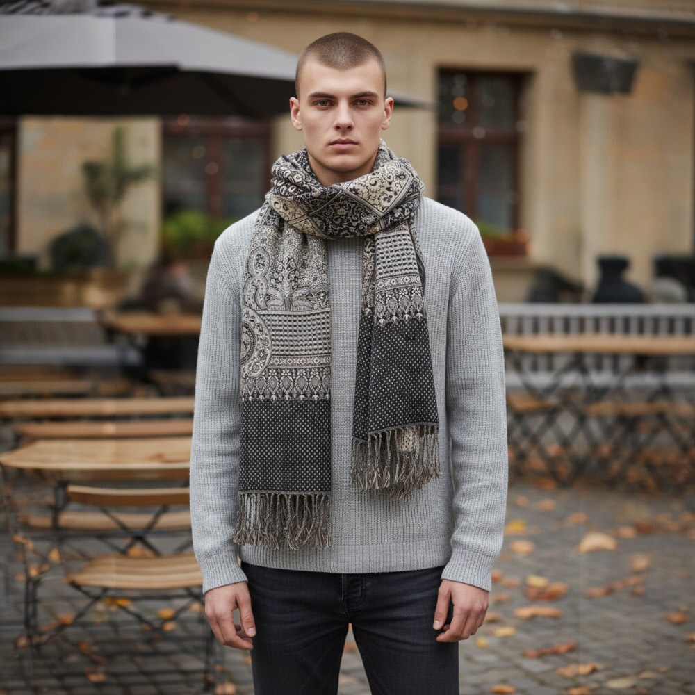 Dieser elegante Schal ist nicht nur ein praktisches Accessoire, sondern auch ein echtes Stilstatement – ein Stück, das zeigt, dass der Träger Wert auf Qualität, feine Details und zeitlose Eleganz legt.