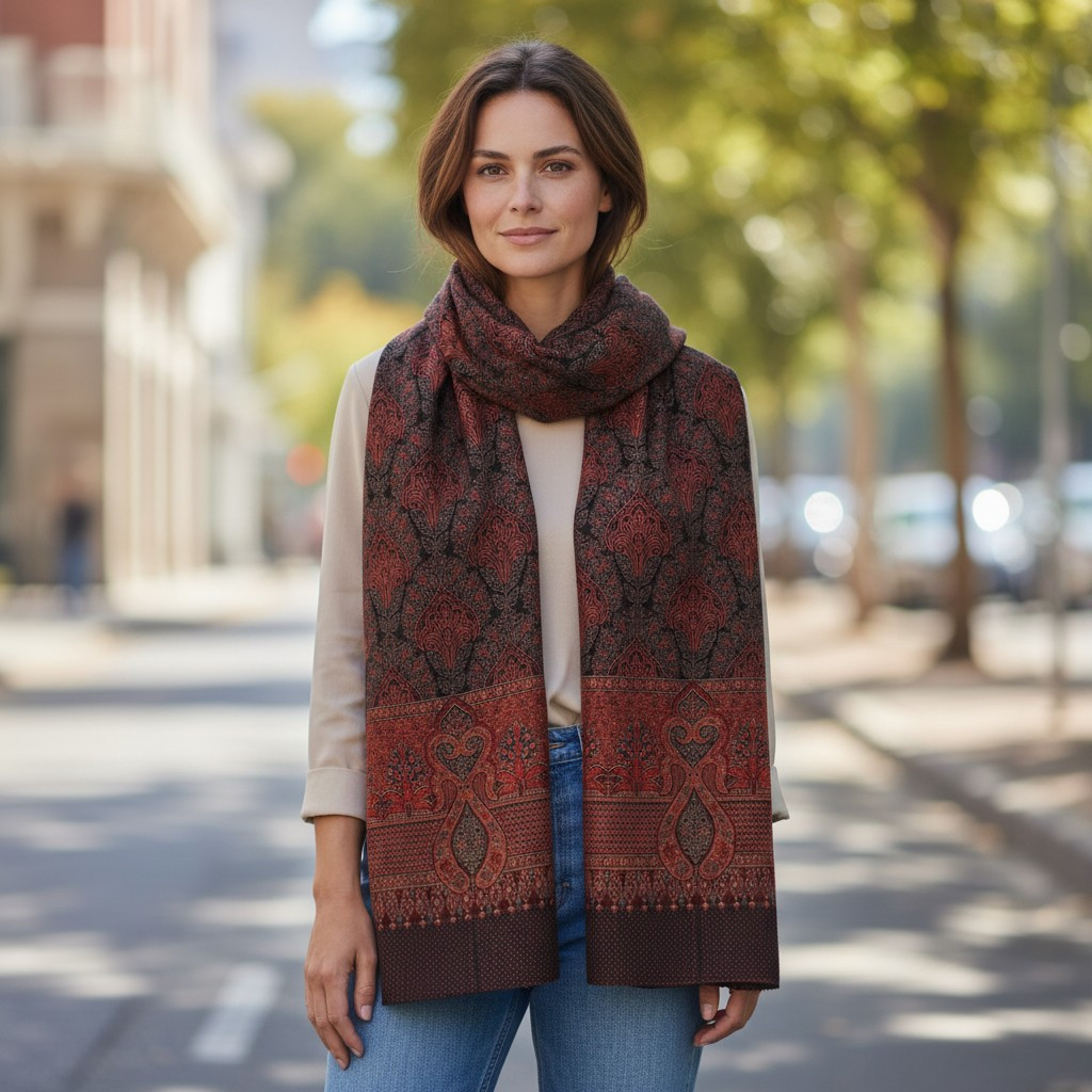 Dieser elegante Schal ist nicht nur ein praktisches Accessoire, sondern auch ein echtes Stilstatement – ein Stück, das zeigt, dass der Träger Wert auf Qualität, feine Details und zeitlose Eleganz legt.