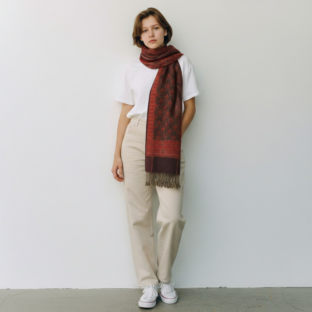 Dieser elegante Schal ist nicht nur ein praktisches Accessoire, sondern auch ein echtes Stilstatement – ein Stück, das zeigt, dass der Träger Wert auf Qualität, feine Details und zeitlose Eleganz legt.