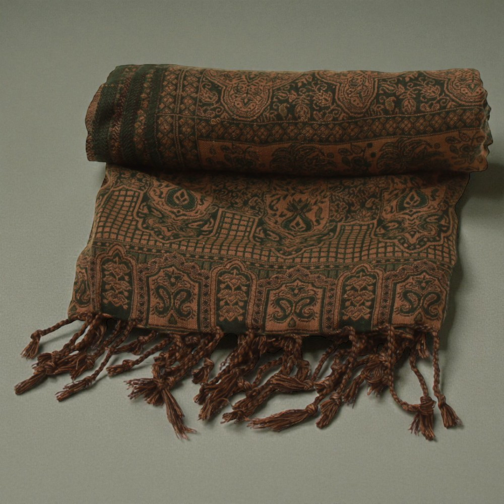 Eleganter Damen Schal 215x105 dunkelgrün mit authentischem Muster